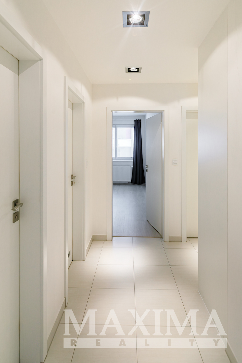 Byt je umístěn v 1.patře novostavby s výtahem. V kuchyňském koutě je linka s varnou deskou, vestavěnou troubou, lednicí a myčkou. V obývacím pokoji kožená sedací souprava, skříňka pod TV s televizí, v jedné ložnici je nové dvoulůžko včetně nových matrací a vestavěné šatní skříně, druhá ložnice s pracovním stolem. V předsíni vestavěné šatní skříně. K dispozici komora s úložným prostorem. Koupelna se sprchovým koutem a pračkou, WC samostatné. V ceně nájmu sklep i garážové stání. Topení dálkové, centrální. Výborná dopravní dostupnost - jen 5 min od stanice metra B Zličín. Převod el. energie na nájemce. Byt je volný k nastěhování ihned. PENB: G* (údaj není k dispozici)