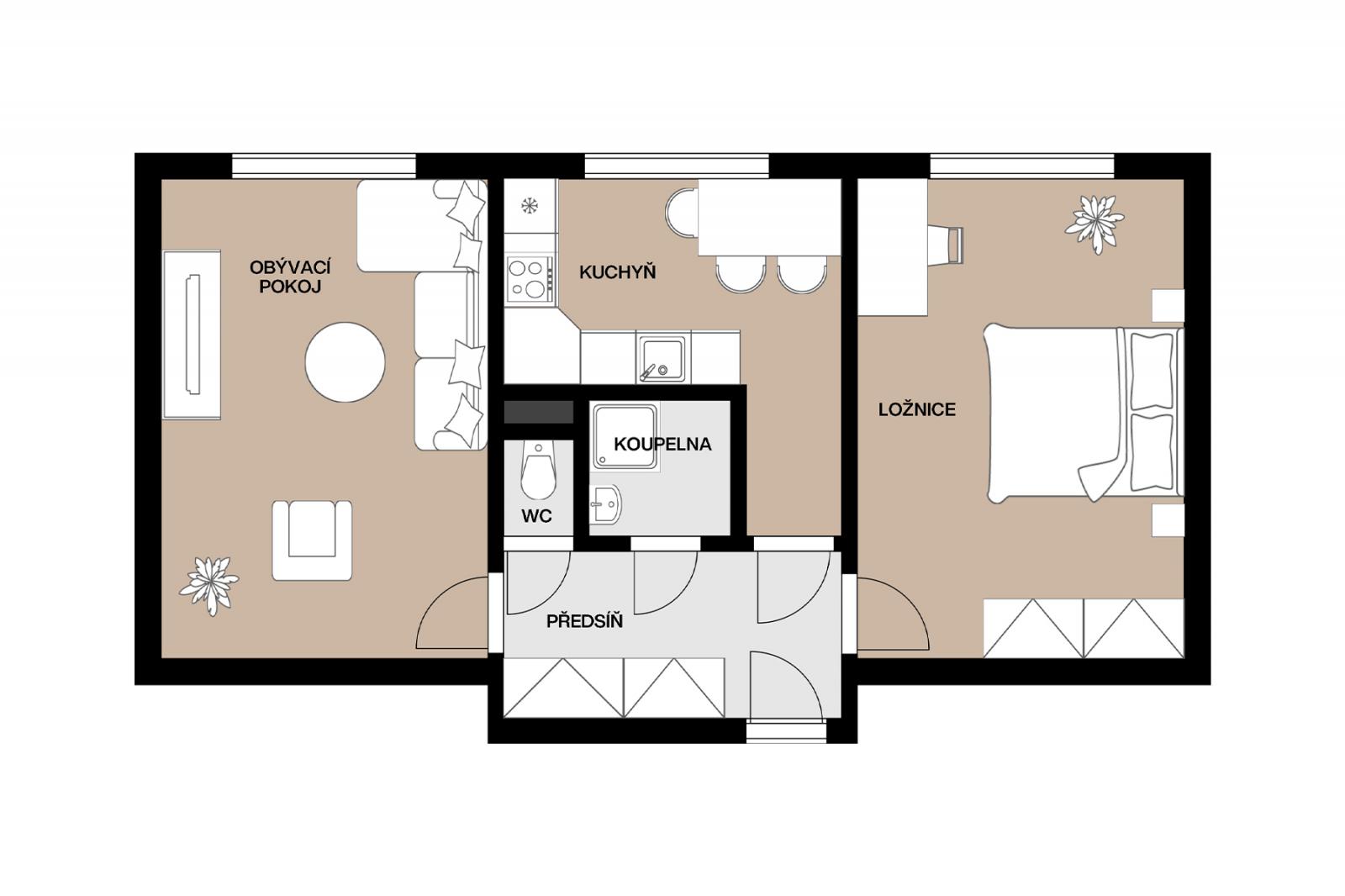 Pronájem bytu 2 + 1, 52 m2