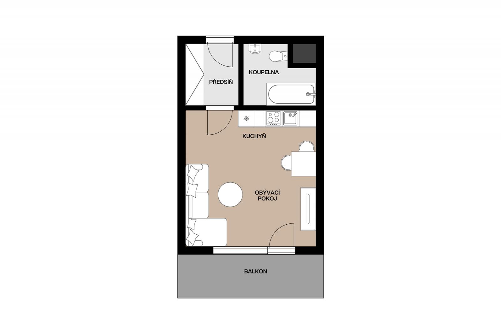 Pronájem bytu 1 + kk, 30 m2