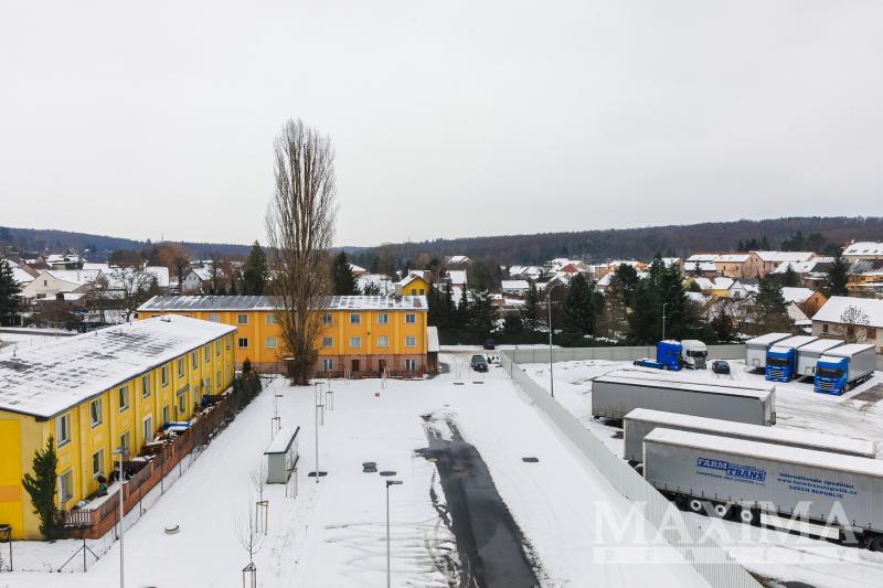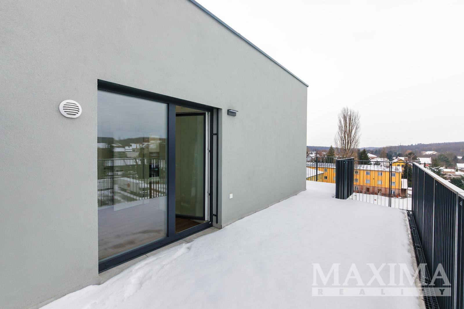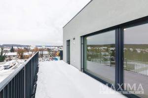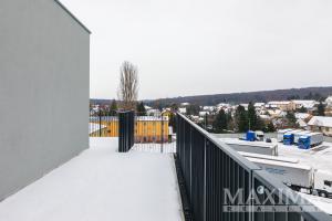 Prostorný byt k pronájmu 2+kk, 45 m2 ve 4. nadzemním podlaží právě dokončené novostavby v projektu ICON v klidné části Kladna, vedle vlakové stanice s přímým spojením do Prahy Masarykova nádraží a ve vzdálenosti přibližně 6 km od nájezdu na dálnici D7, se na rozdíl od většiny bytů v této velikostní kategorii umí pochlubit luxusem dalších 40 m2 na venkovní terase s výhledem do kraje a jedním parkovacím místem v podzemní garáži.