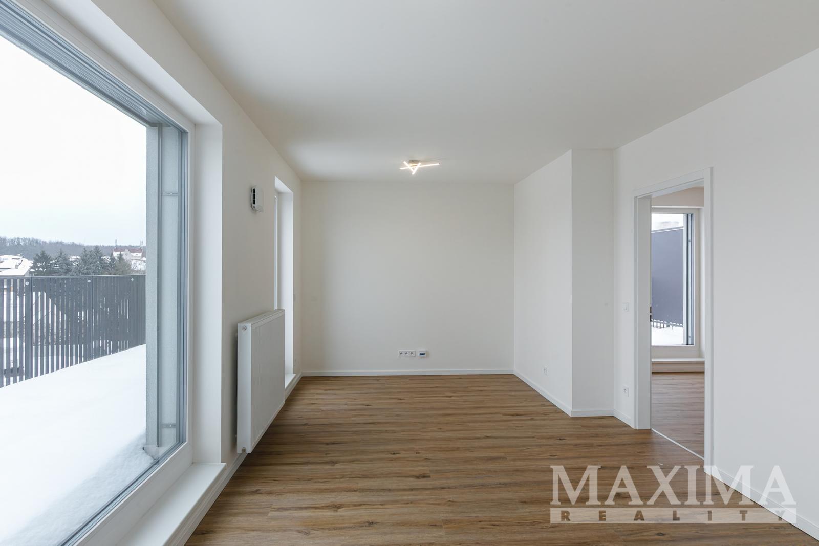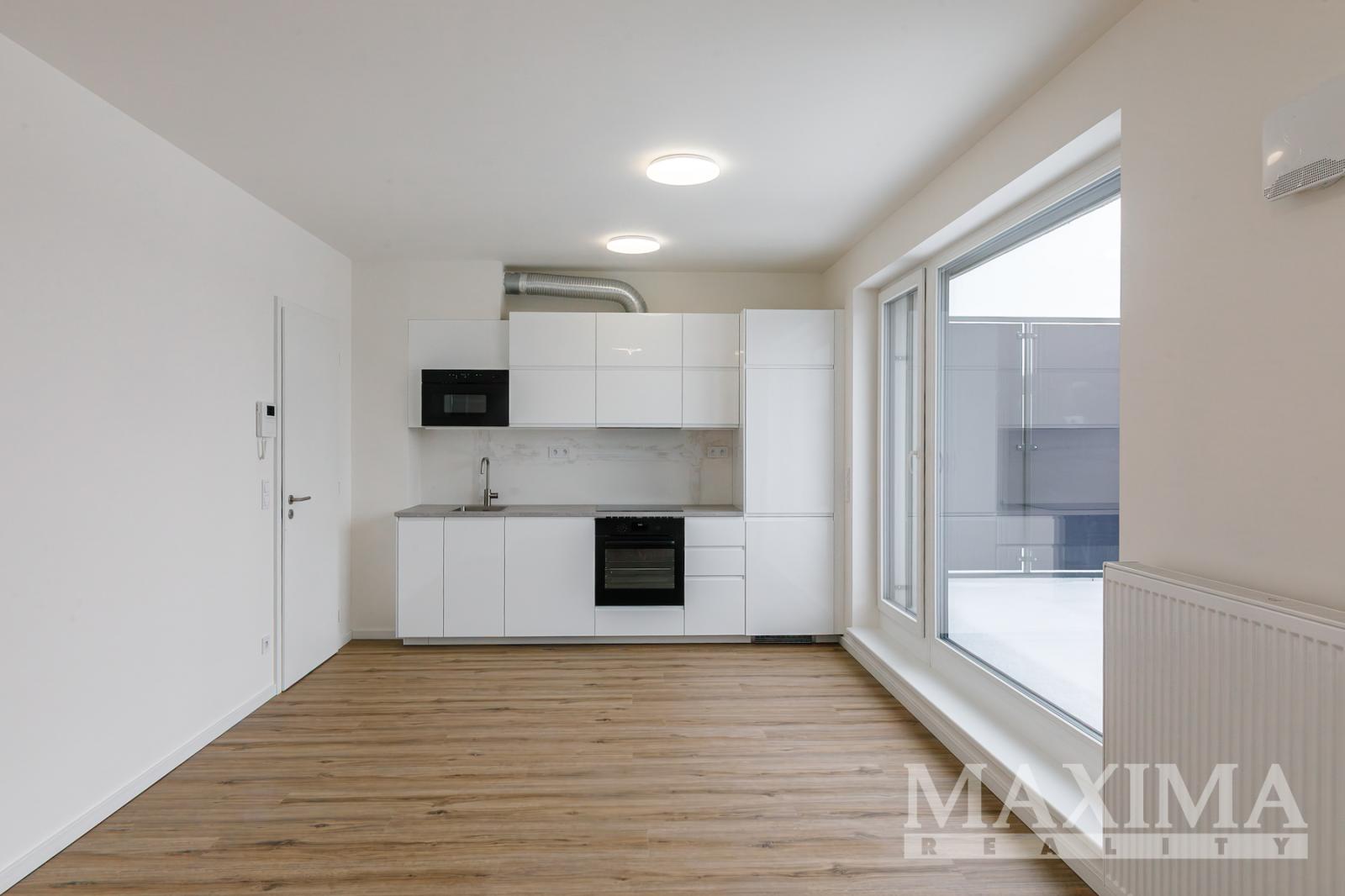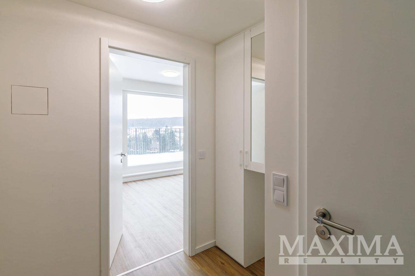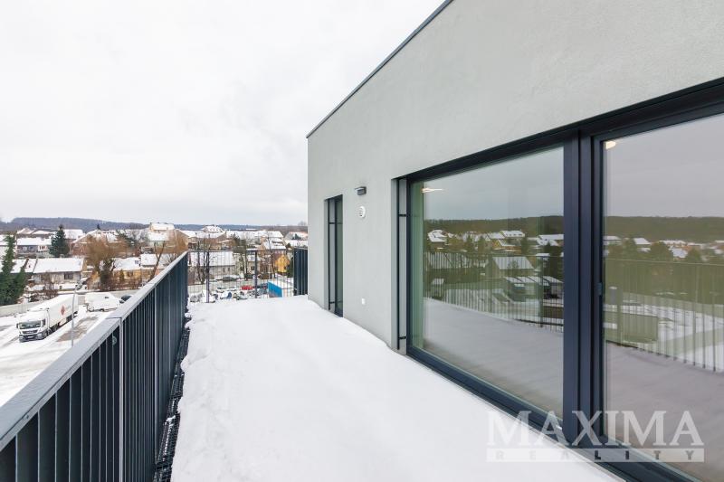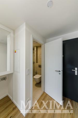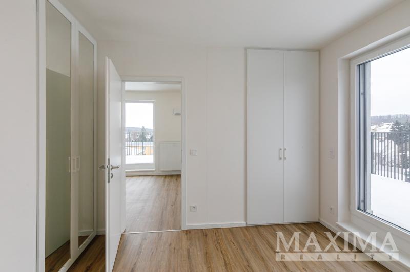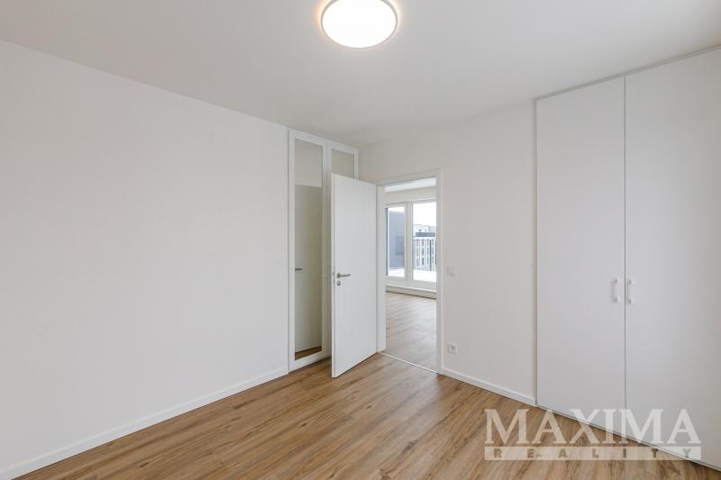 Byt nabídne 2 pokoje se spoustou světla díky velkým francouzským oknům, s výstupem na zmíněnou terasu z obou pokojů, koupelnu se sprchovým koutem a toaletou a předsíň. V kuchyni nainstalována nová kuchyňská linka v hezkém elegantním bílo černém vzhledu, vybavená spotřebiči. Před letními vedry i zimním chladem vás budou chránit venkovní žaluzie. Kromě kuchyně je byt nabízen k pronájmu nezařízený. V domě k dispozici výtah.