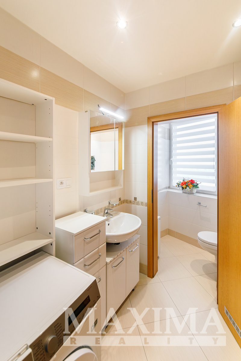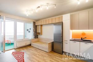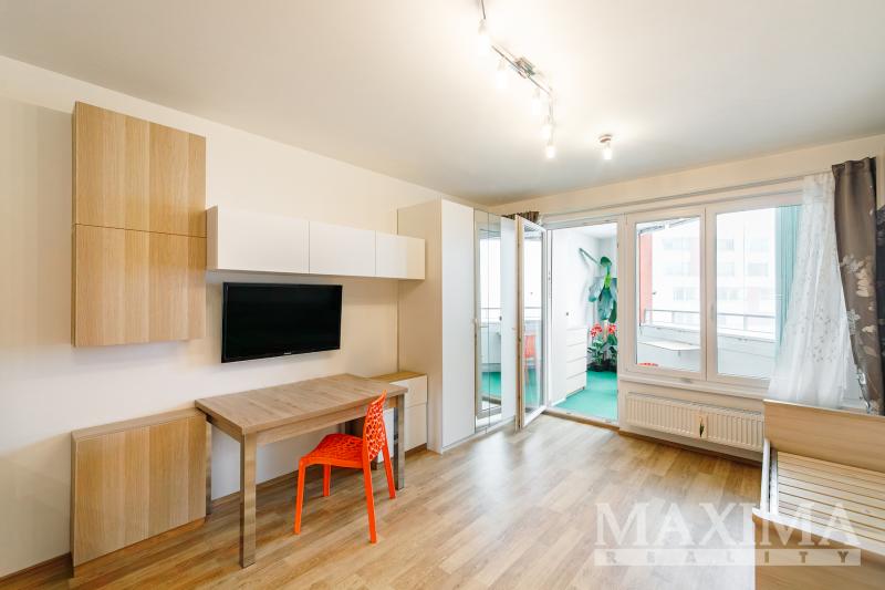 Nabízíme kompletně zařízený byt 1+kk s lodžií a parkovacím místem, lokalita Praha 10 - Horní Měcholupy, z roku 2016. Byt je umístěn v 9. podlaží domu s výtahy. Plocha bytu je cca 30 m2, plocha lodžie cca 7 m2. V kuchyňském koutě je linka, varná deska, vestavná myčka a parní trouba, dále digestoř a kombinovaná lednice. V pokoji skříňky, rozkládací postel, rozkládací stůl, šatní skříně a televize na polohovací konzoli. V koupelně sprchový kout, pračka, skříňky a police. V předsíni šatní skříň a botník. Na lodžii je skříň, komoda a polohovací stolek. V bytě je dostatek úložného prostoru. Spotřebiče jsou většinou nízkoenergetické (A+++, A++) a led osvětlení ve všech místnostech. Toaleta samostatná s oknem. Topení dálkové, ústřední. K bytu patří sklep cca 4 m2 a parkovací místo, oboje umístěné v suterénu nedaleko od sebe, již v ceně nájmu. V poplatcích není zahrnutý poplatek za elektrickou energii a zavedený internet (možno odpojit). Byt je k nastěhování ihned. PENB: B