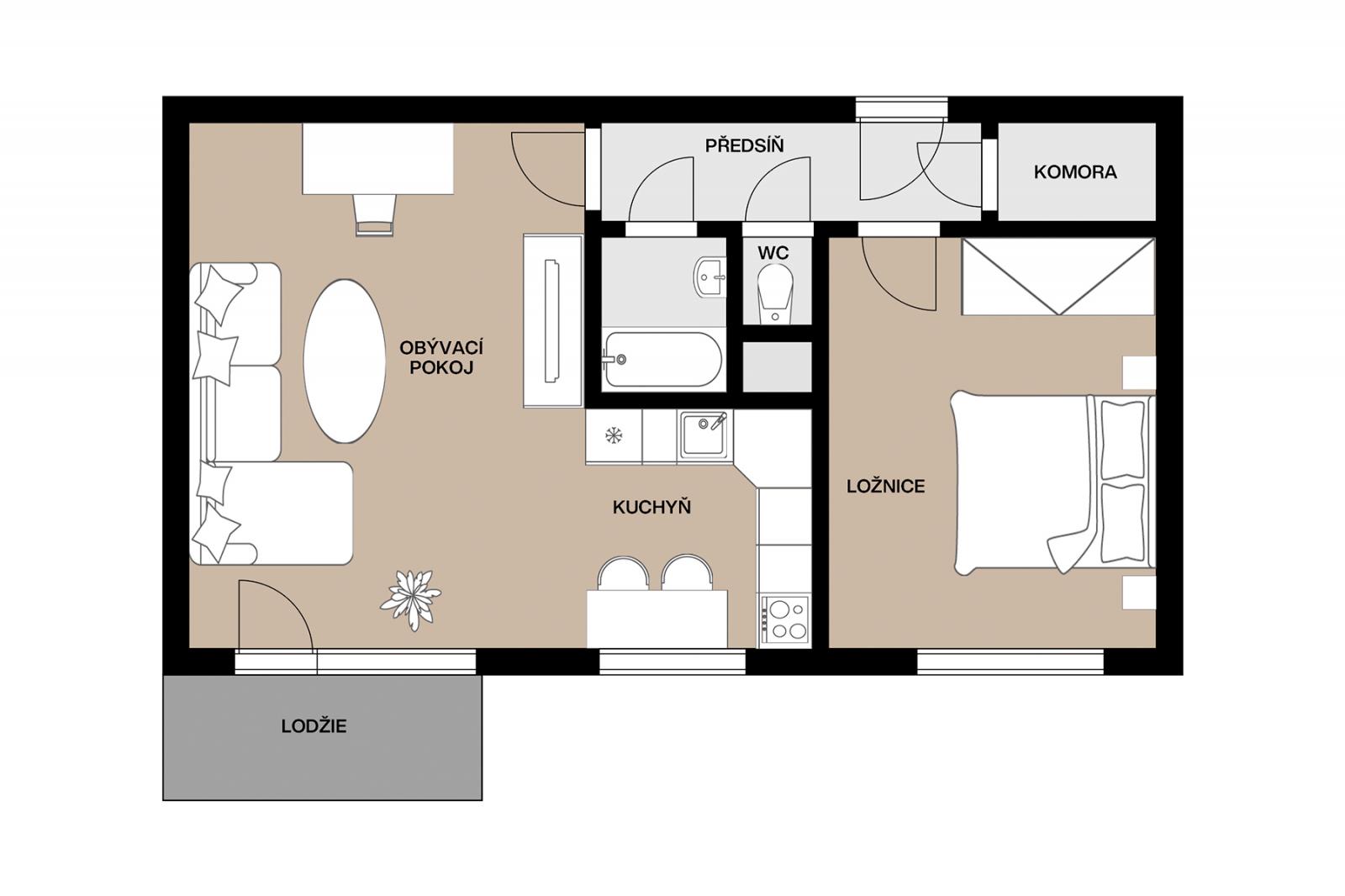 Pronájem bytu 2 + kk, 48 m2