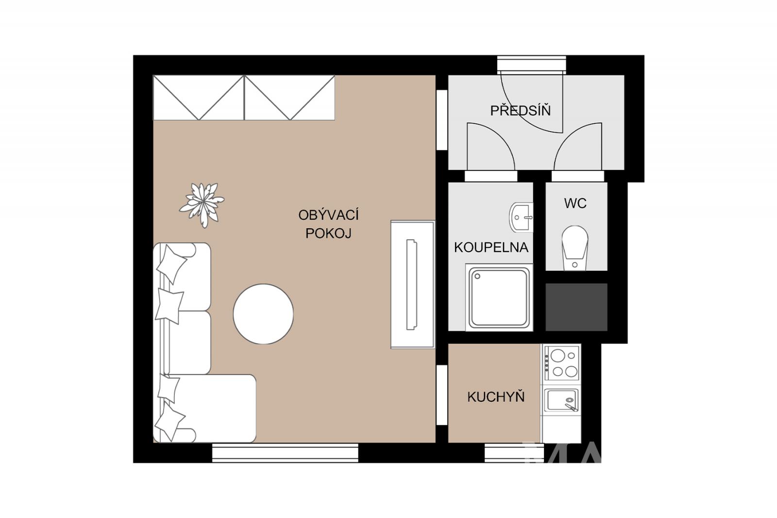 Pronájem bytu 1 + 1, 30 m2