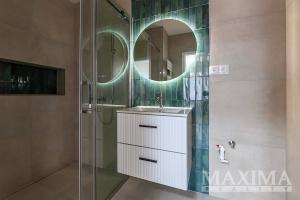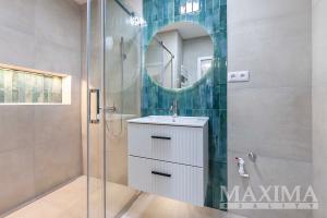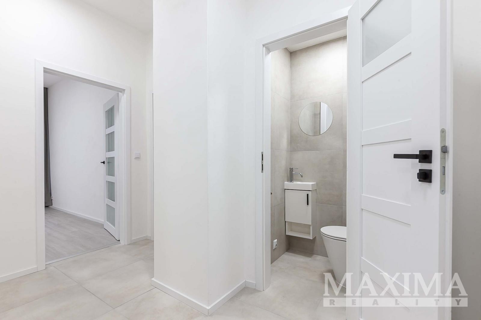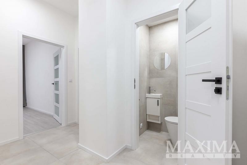 Koupelna je vybavena prostorným sprchovým koutem. V bytě jsou kvalitní podlahy dle účelu (parkety, vinyl, dlažba). Komfort bydlení zvyšuje částečné podlahové vytápění, možnost ovládání veškerých světel pomocí mobilní aplikace a noční ambientní osvětlení. V prostorné vstupní chodbě lze umístit úložné prostory a část využít například pro zřízení pracovního kouta či šatny, součástí je také samostatné WC s bidetovou sprškou. V bytě se nachází kumbál pro uložení sezónních věcí. K bytu náleží i sklepní kóje. Datové rozvody a příprava pro Wi-Fi jsou připraveny v celém bytě.