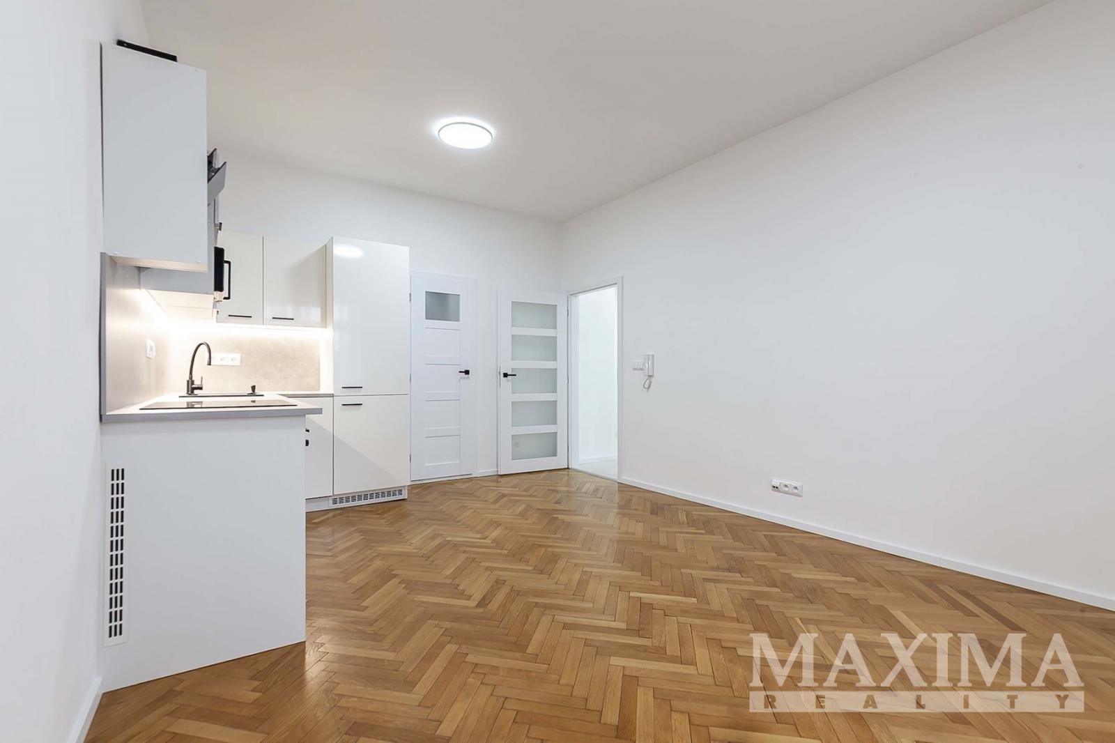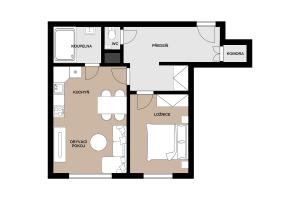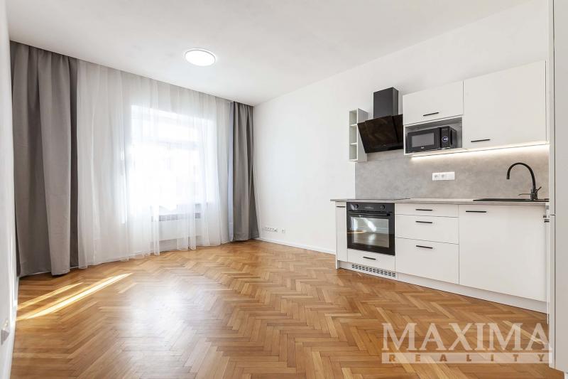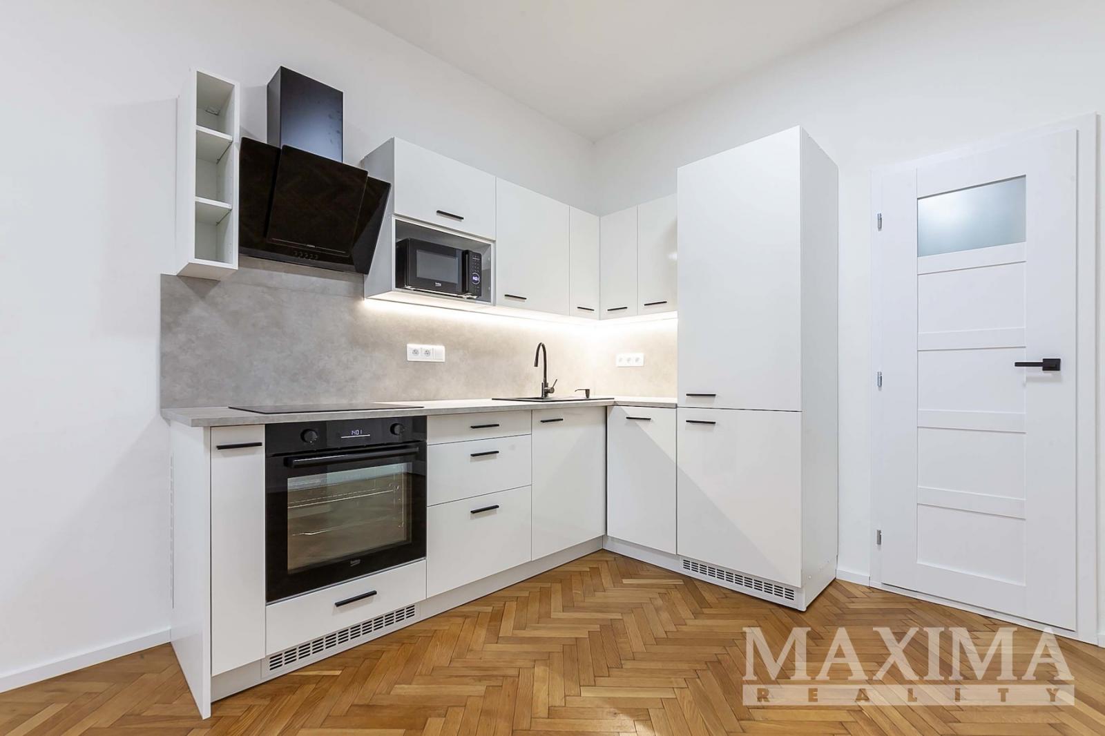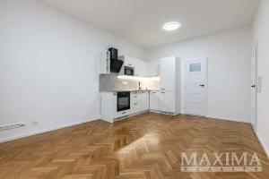 Byt disponuje novou kuchyňskou linkou vybavenou moderními vestavěnými spotřebiči, včetně indukční varné desky, elektrické trouby, myčky nádobí a digestoře. Součástí je rovněž vestavěná lednice s mrazákem. Kuchyňský kout je plynule propojen s obývacím prostorem. Dále je k dispozici samostatný neprůchozí pokoj (ložnice).