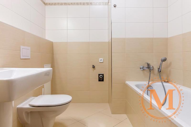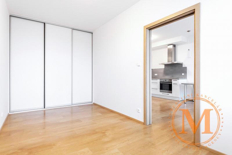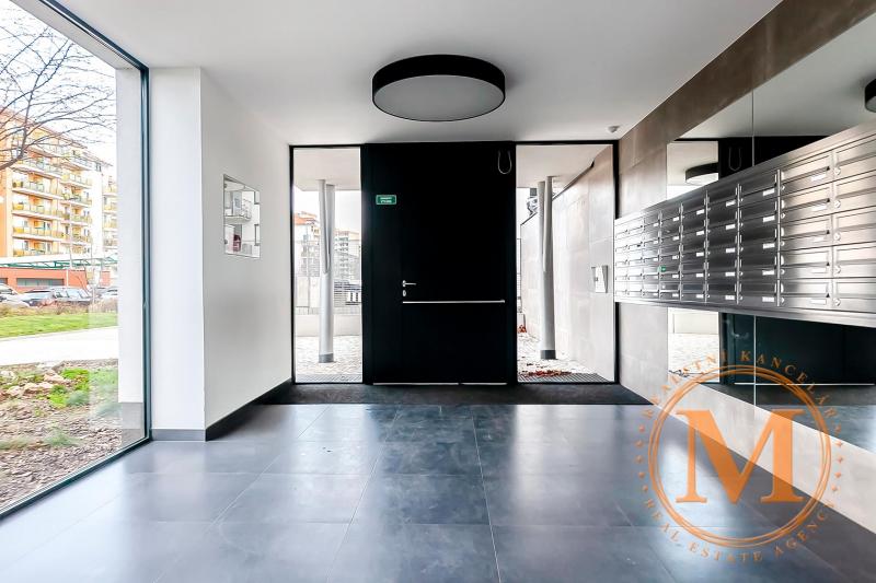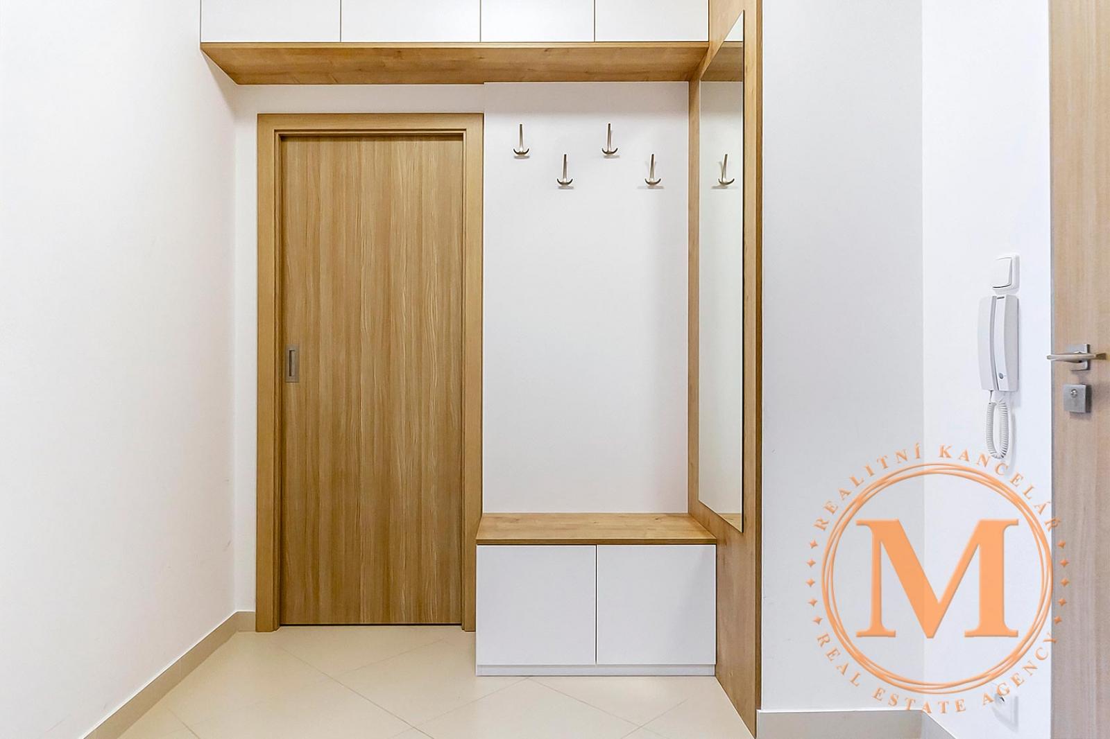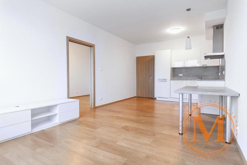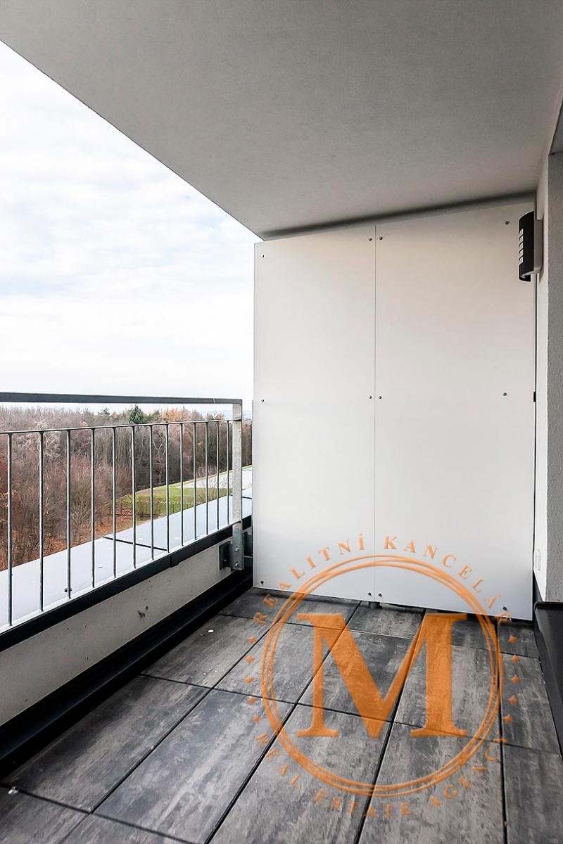 Nabízíme krásný byt 2+kk o ploše 50,6 m2 s balkonem (3,8 m2) a garážovým stáním, Praha 10 - Horní Měcholupy. Byt se nabízí jako částečně zařízený (na fotografiích zařízení není) a nachází v 5. patře novostavby s výtahem. Kuchyňská linka se všemi spotřebiči - sklokeramická varná deska, elektrická trouba, myčka, lednice s mrazákem. Obývací pokoj se 2 stoly (jídelní a konferenční) a židle, skříňka pod TV, rozkládací gauč. V ložnici je postel se zdravotní matrací a vestavěná skříň. Koupelna s vanou a toaletou, pračka. Vinylová podlaha, dlažba, žaluzie. V předsíni je samostatná šatna s plně integrovaným policovým systémem. Ze všech částí bytu je bezprostřední výhled do lesoparku. K bytu náleží garážové stání - zahrnuto v ceně. Volný od 15.4.2026.