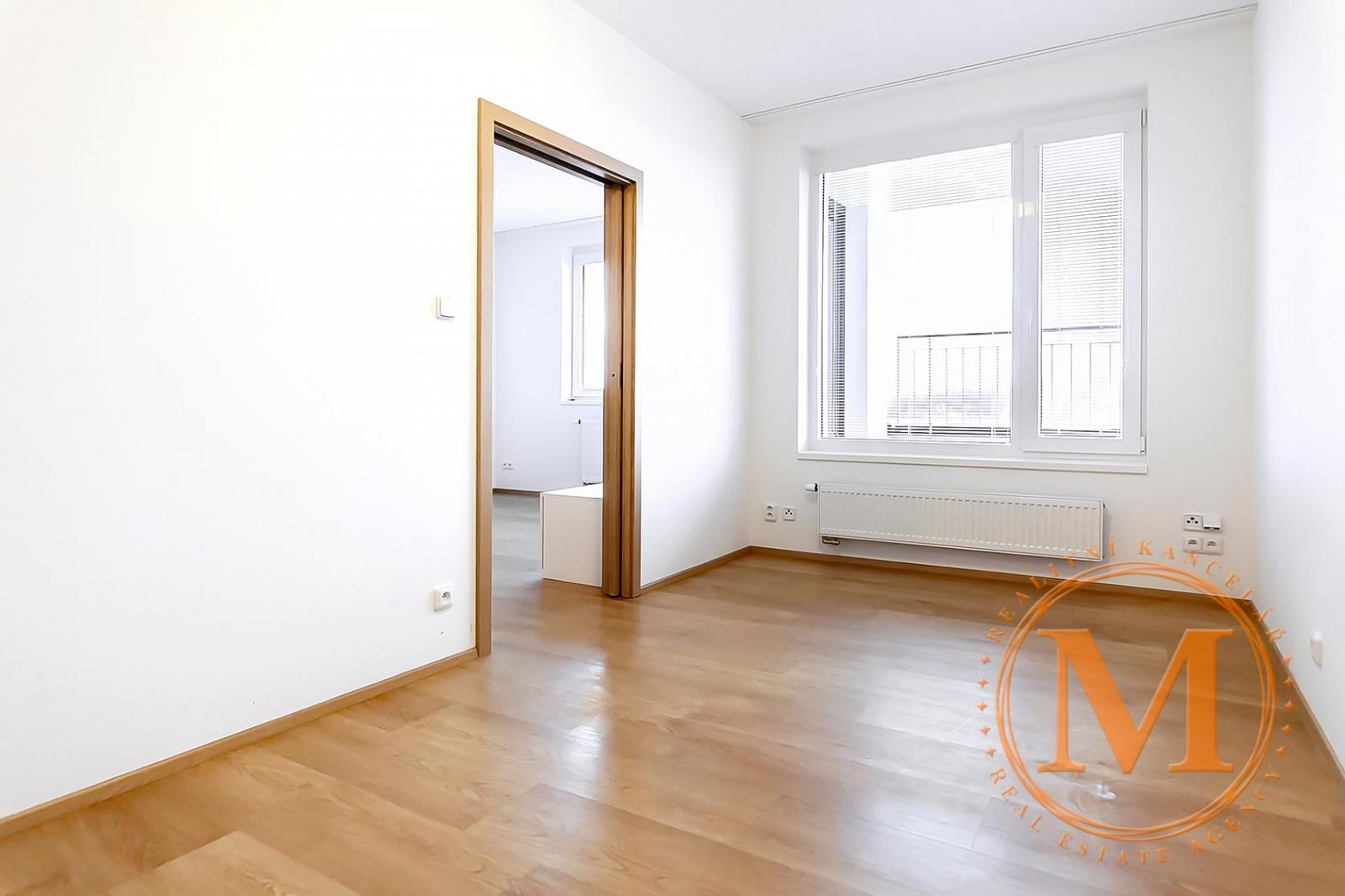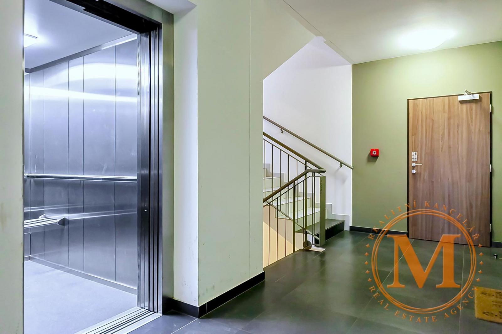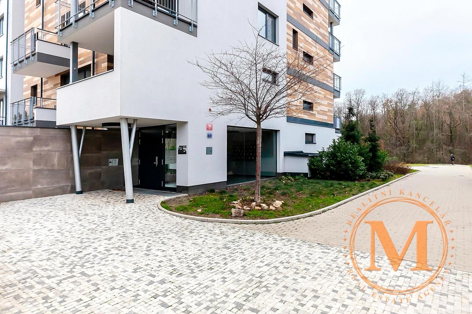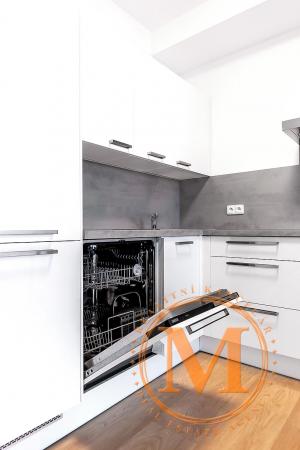 Nabízíme krásný byt 2+kk o ploše 50,6 m2 s balkonem (3,8 m2) a garážovým stáním, Praha 10 - Horní Měcholupy. Byt se nabízí jako částečně zařízený (na fotografiích zařízení není) a nachází v 5. patře novostavby s výtahem. Kuchyňská linka se všemi spotřebiči - sklokeramická varná deska, elektrická trouba, myčka, lednice s mrazákem. Obývací pokoj se 2 stoly (jídelní a konferenční) a židle, skříňka pod TV, rozkládací gauč. V ložnici je postel se zdravotní matrací a vestavěná skříň. Koupelna s vanou a toaletou, pračka. Vinylová podlaha, dlažba, žaluzie. V předsíni je samostatná šatna s plně integrovaným policovým systémem. Ze všech částí bytu je bezprostřední výhled do lesoparku. K bytu náleží garážové stání - zahrnuto v ceně. Volný od 15.4.2026.