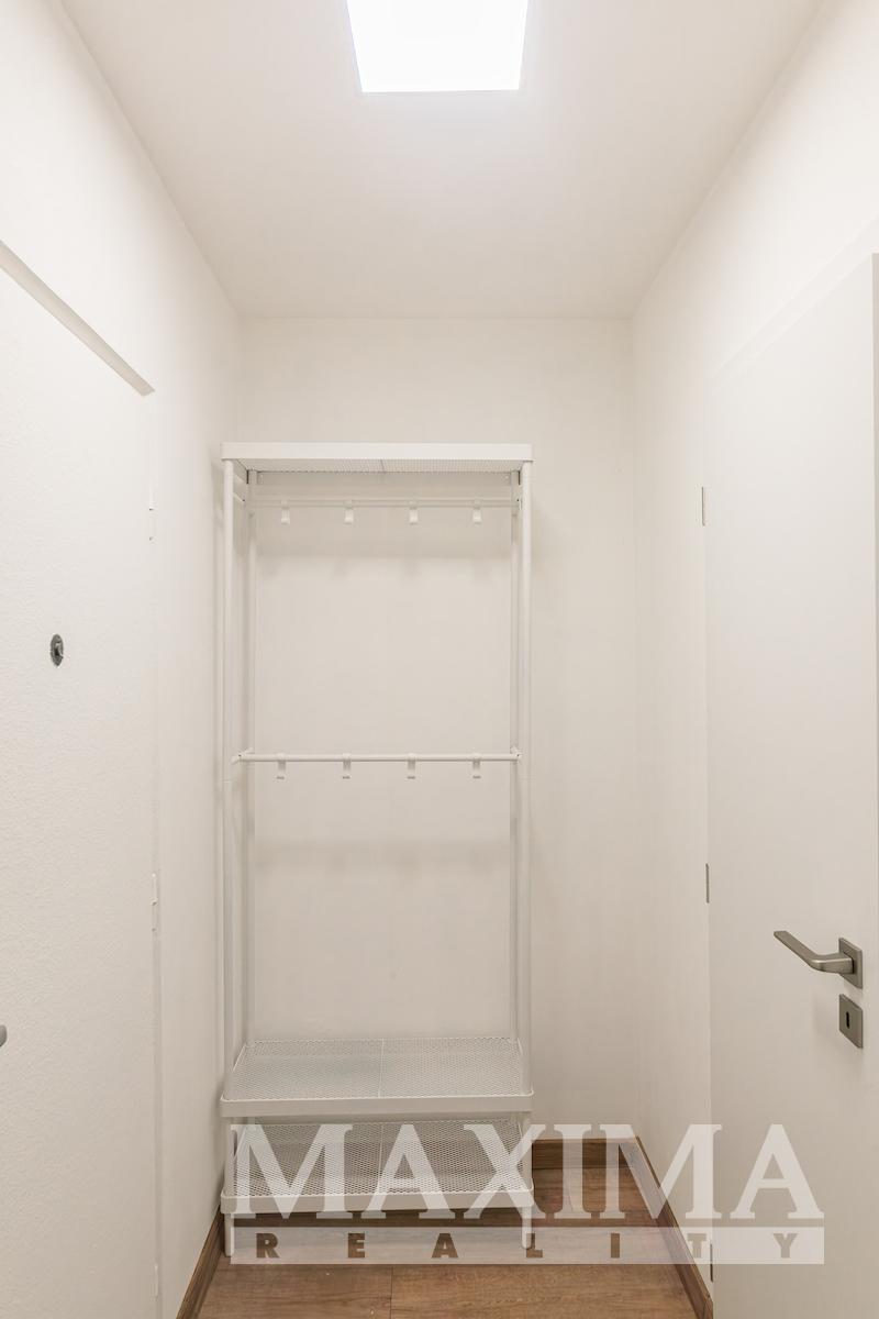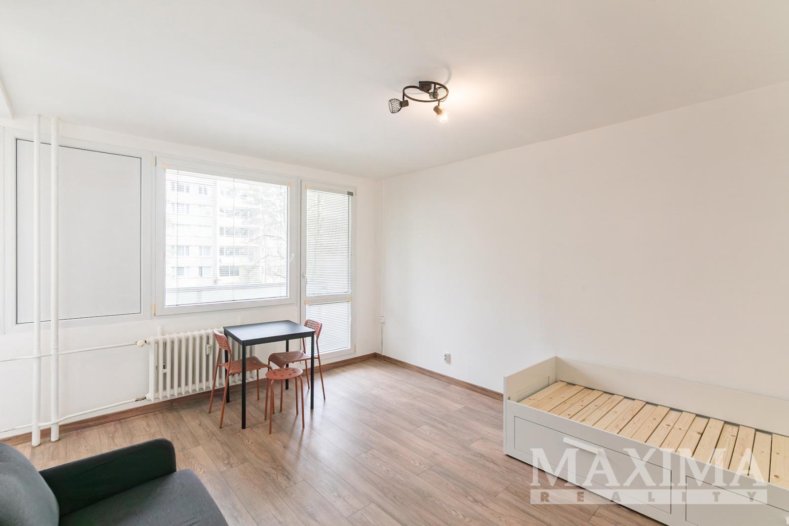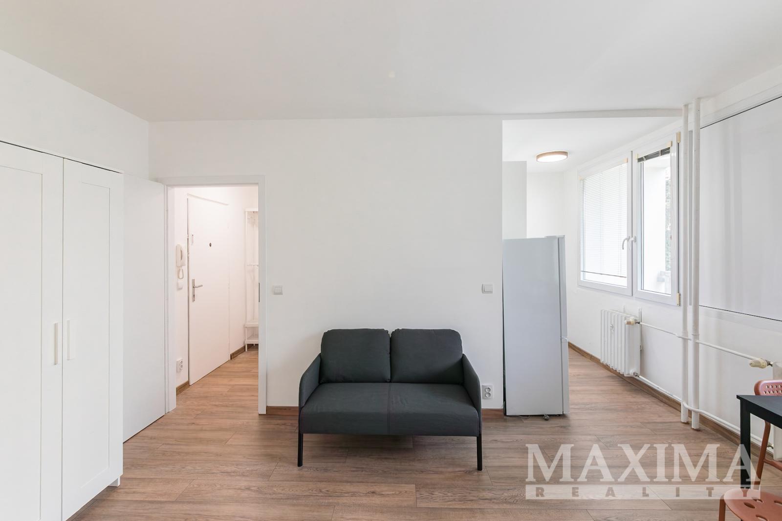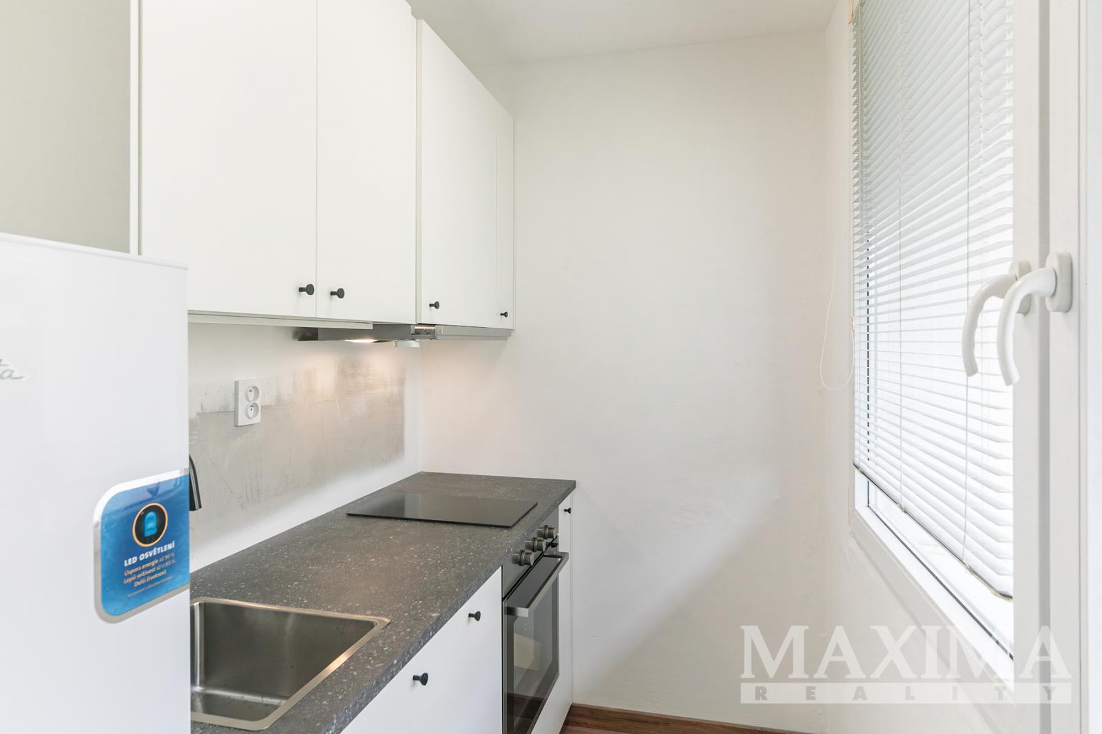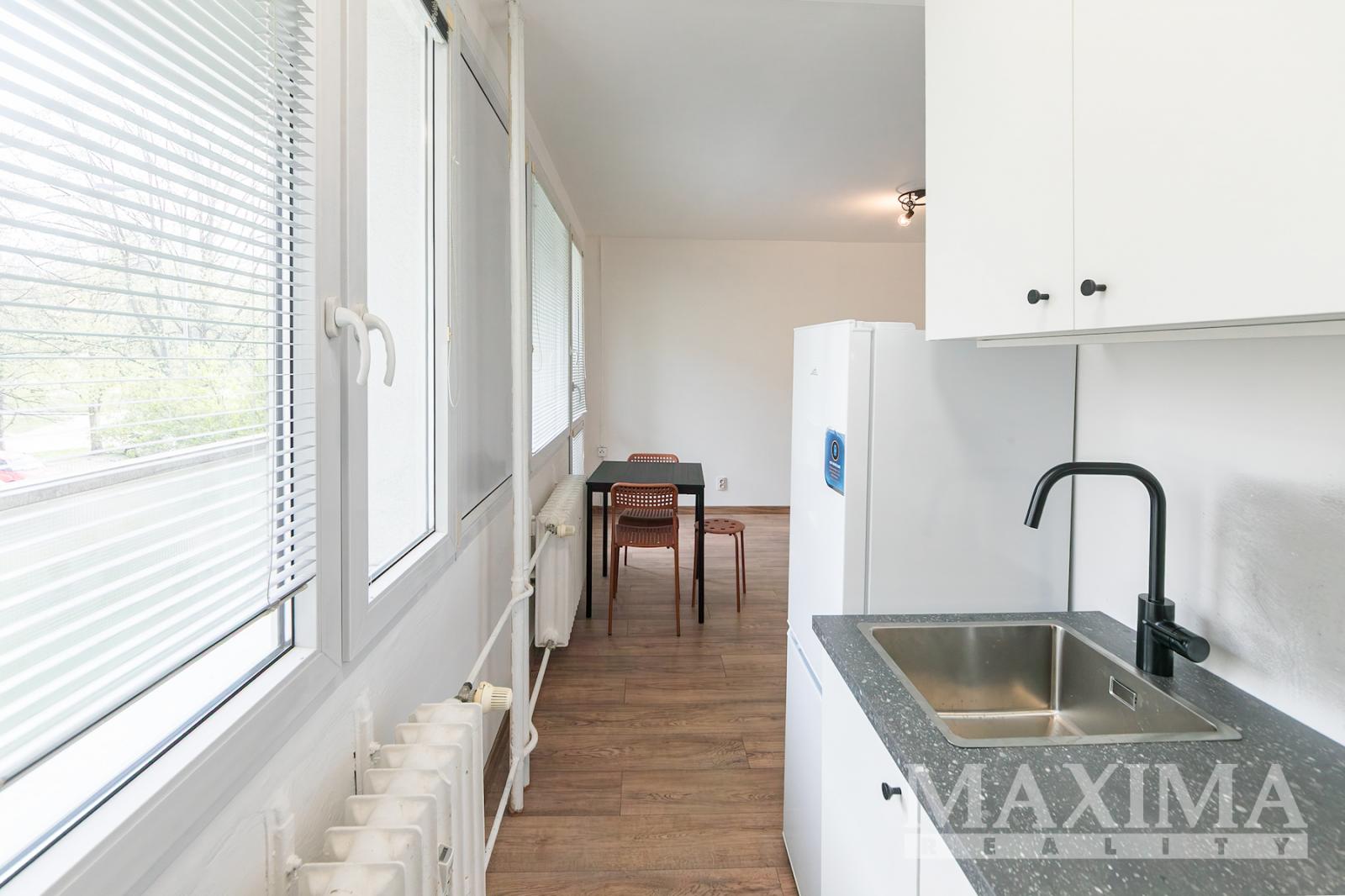 Nabízíme byt 1+kk s velkou lodžií v lokalitě Praha 9, kousek od stanice metra trasy C - Střížkov. Byt je po kompletní rekonstrukci a je umístěn v 1.patře zatepleného panelového domu s výtahem. Plocha bytu je cca 26 m2 + plocha lodžie cca 6 m2. V kuchyňském koutě je linka, varná deska, vestavěná trouba, lednice a myčka, vše je nové, dále jídelní stůl a židle. V pokoji postel 160x200 cm, šatní skříň a pohovka. Šatní skříň je i v předsíni. Na podlaze vinyl. Plastová okna včetně žaluzií. K bytu patří i komora na patře domu. Byt je k nastěhování ihned. PENB: D