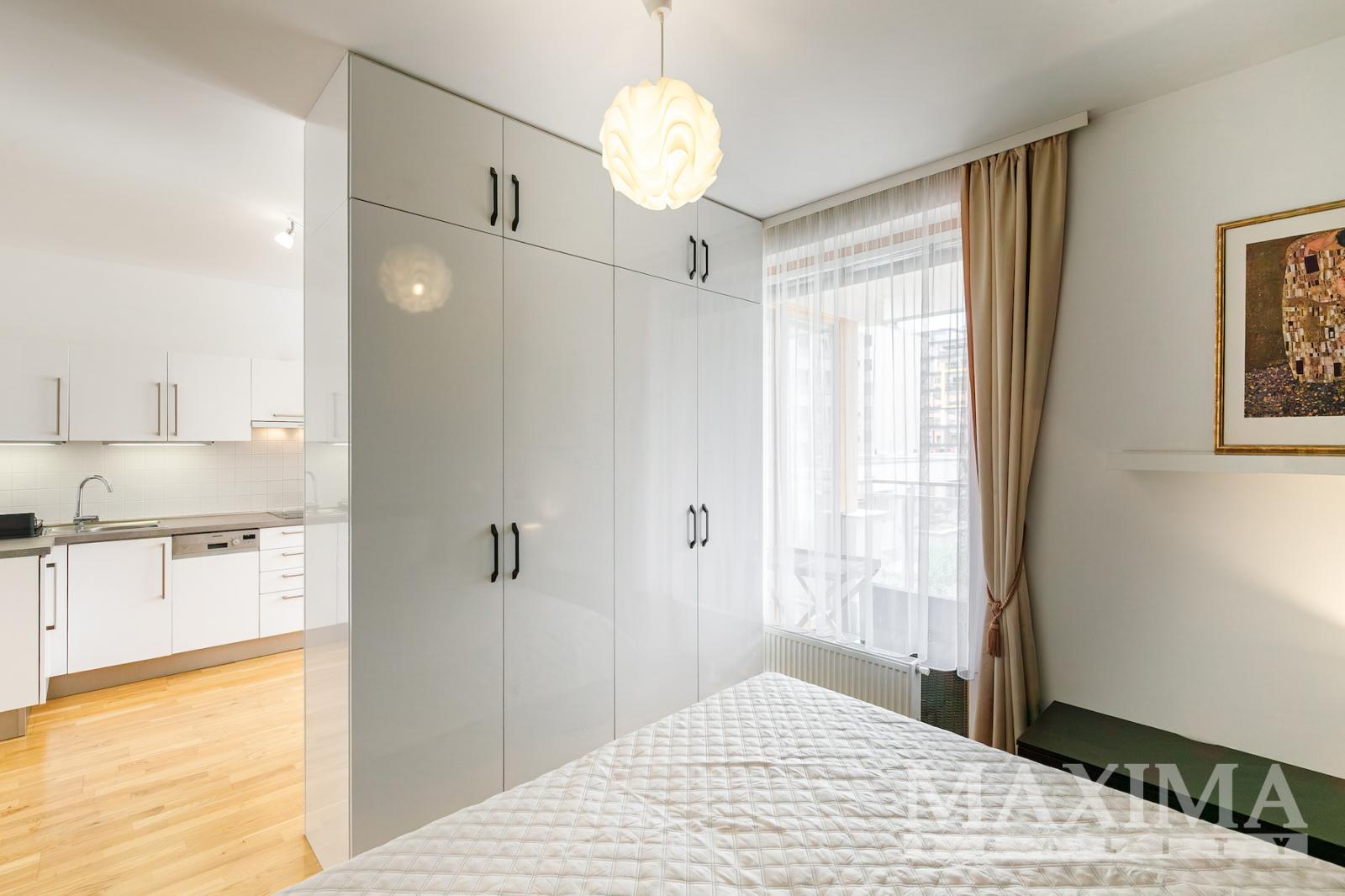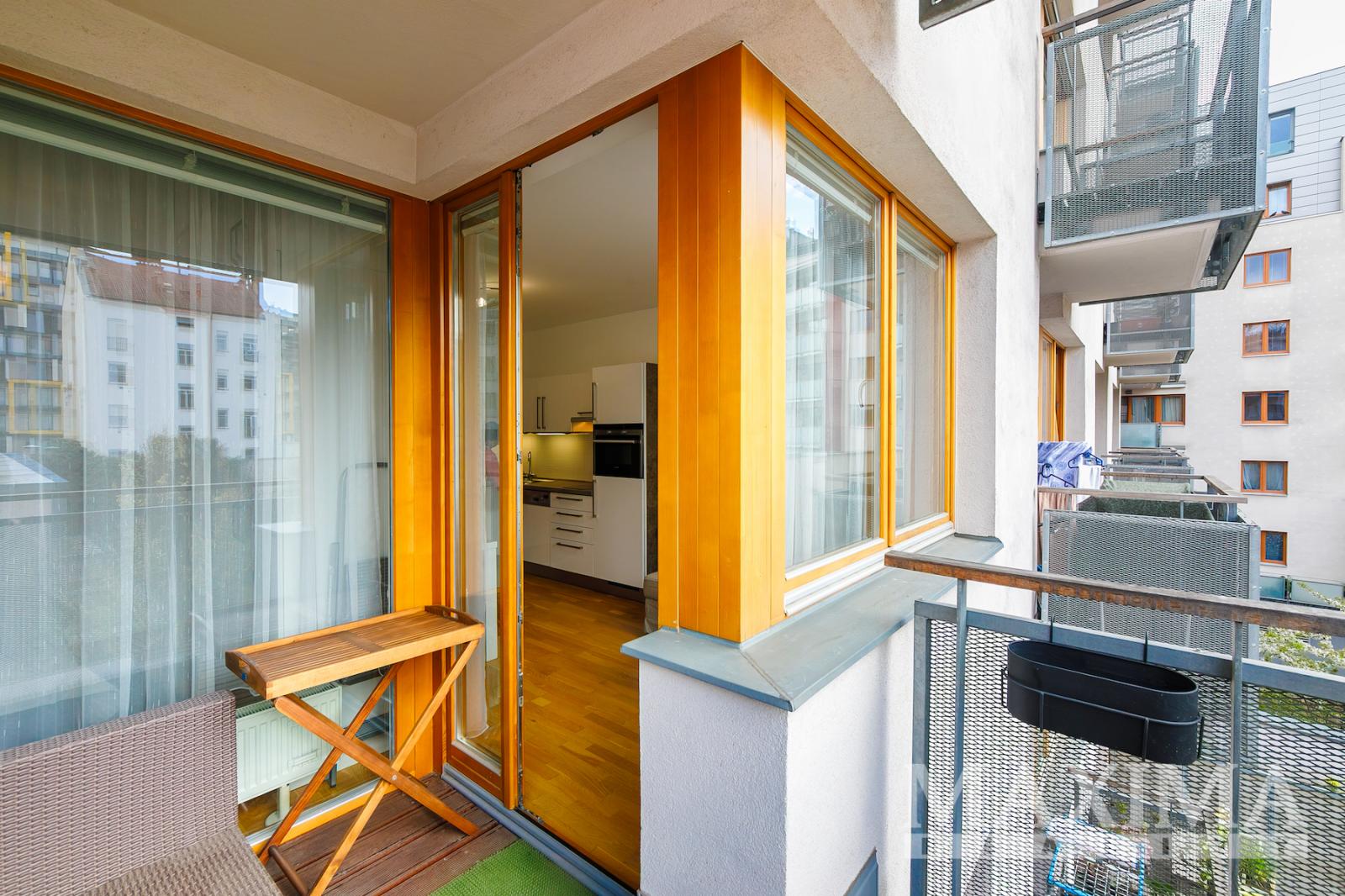 Nabízíme velice hezký, zařízený byt 1+kk s balkonem, sklepem a garážovým stáním. Praha 9 - v pěším dosahu metra trasy B Českomoravská nebo Palmovka. Byt je umístěn ve 4. NP podlaží novostavby s výtahem. Plocha bytu je cca 32 m2 + balkonu cca 4 m2. Orientace jižní. V kuchyňském koutě je varná deska, el. trouba, lednice a myčka. V pokoji je sedací souprava, v ložnici dvoulůžko a šatní skříně. Na podlaze plovoucí podlaha. Topení dálkové ústřední. V bytě je také pračka. Balkon orientován do vnitrobloku. Na střeše je instalována fotovoltaika, získaná energie se využívá k osvětlení společných prostor. Byt je volný k nastěhování ihned. PENB: G* (údaj není k dispozici)