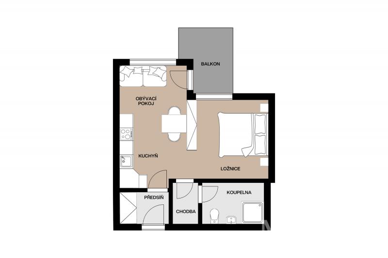 Pronájem bytu 1 + kk, 32 m2