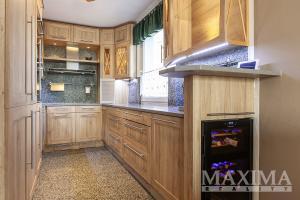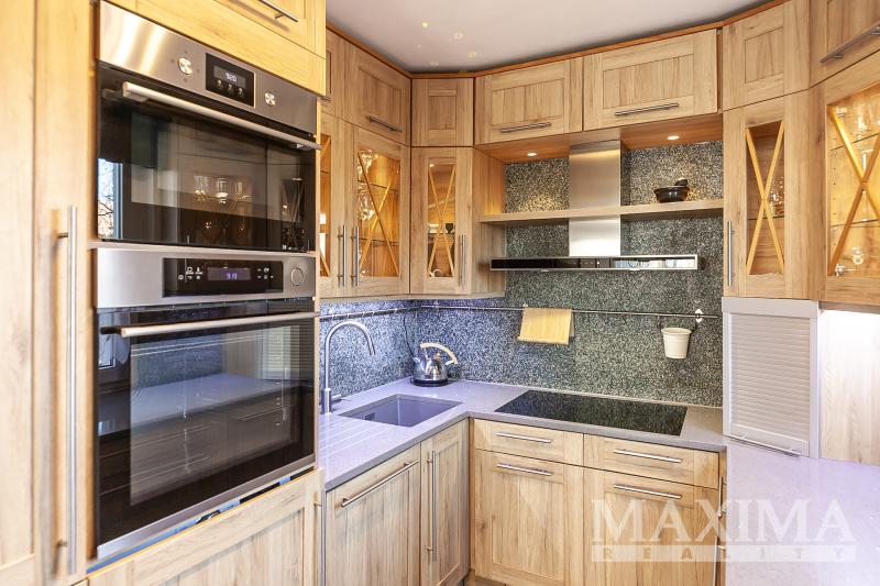 Byt je po kompletní rekonstrukci, pokoje jsou neprůchozí. Obývací pokoj je spojen s kuchyní, zařízení - sedací souprava, konferenční stolek, televizní stolek s televizí, poličky, jídelní stůl, židle. Kuchyňská linka je vybavená kamennou kuchyňskou deskou a vestavnými spotřebiči (parní trouba, myčka, pračka mikrovlnka, varná deska s digestoří, vinotéka a bar na alkohol či jiné nápoje a velká lednice s mrazákem).