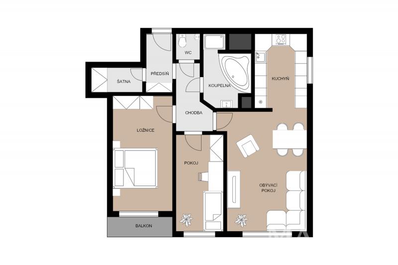 K dlouhodobému pronájmu nabízíme nadstandardně vybavený byt 3+1 (76 m2) s lodžií (2,7 m2) ve 3. patře bytového domu na Praze 4 _ Chodov.