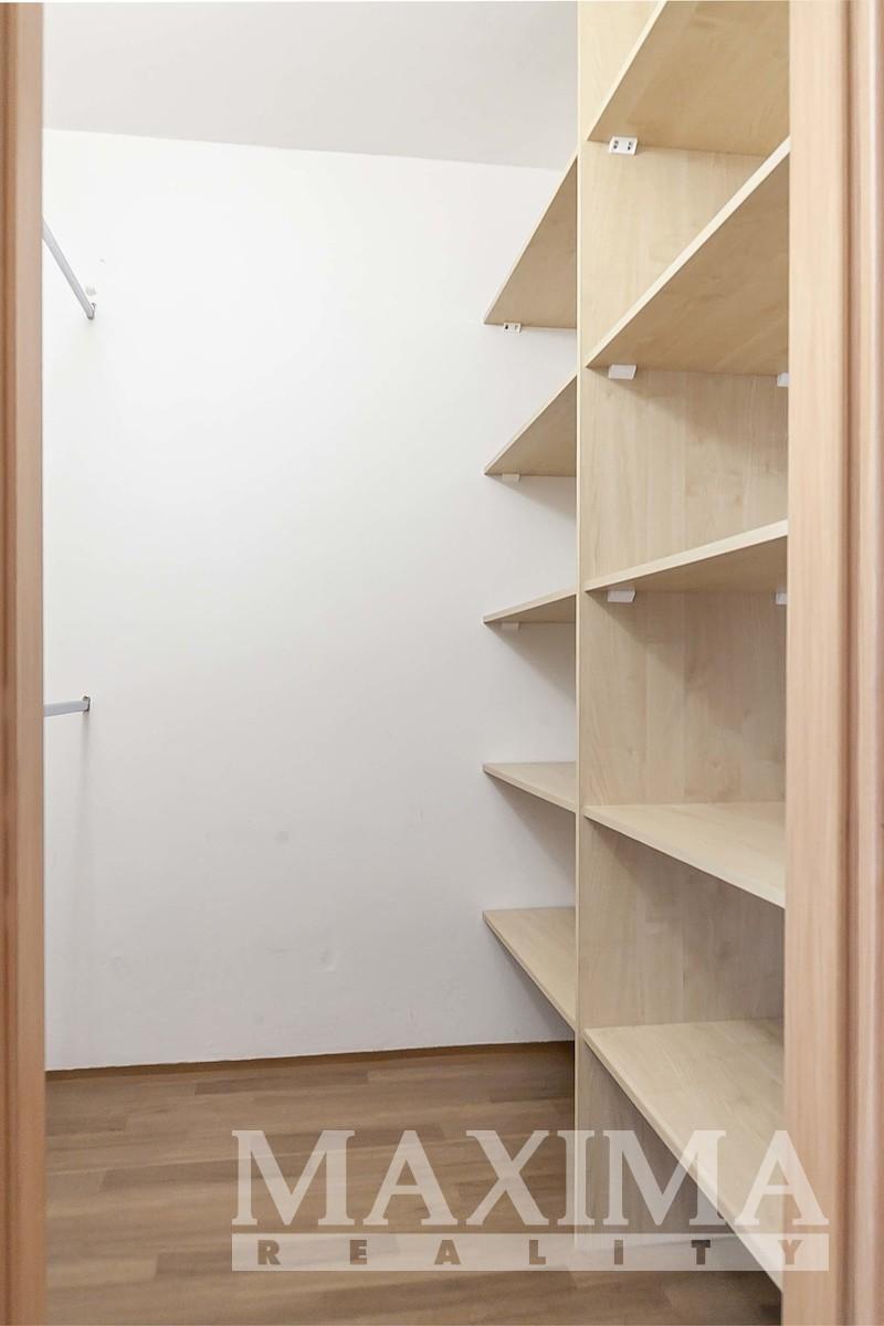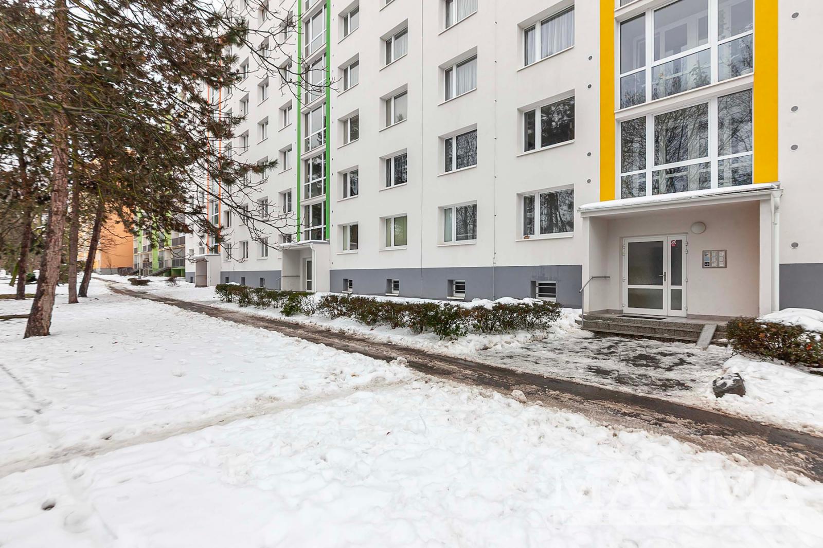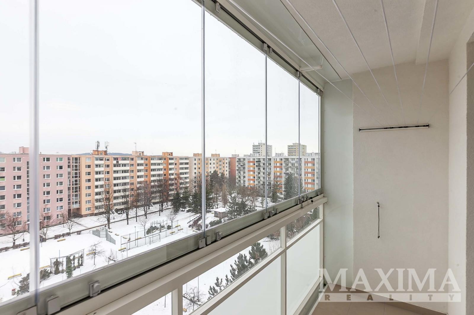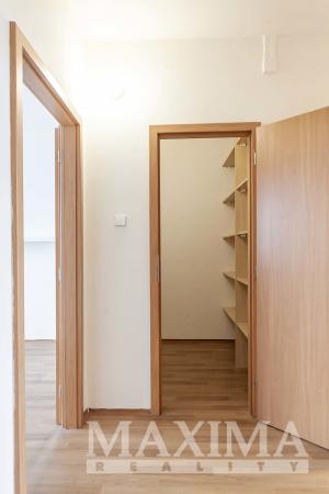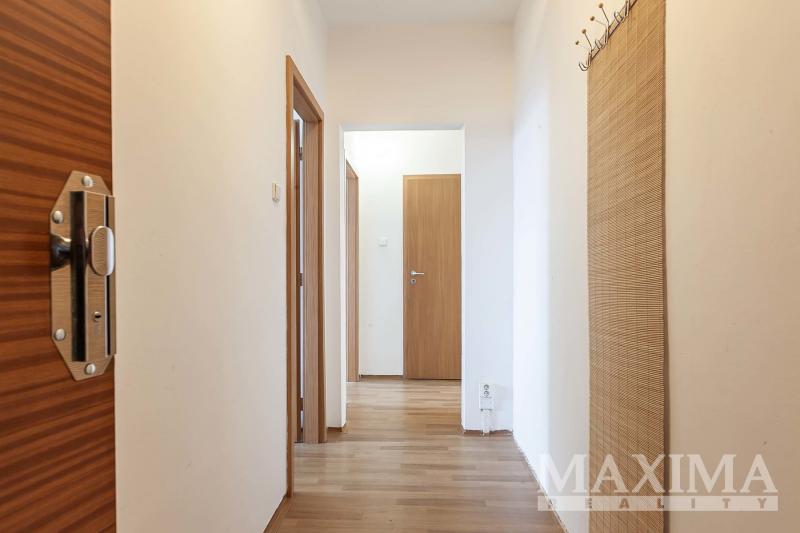 Dispozici bytu tvoří samostatná kuchyně s jídelním koutem (11,7 m2), dva samostatné pokoje (16,2 a 14,6 m2), prostorná šatna, koupelna s vanou, samostatné WC a předsíň. Z jednoho z pokojů je přímý vstup na zasklenou lodžii, která díky své JZ orientací nabízí možnost celoročního posezení. Byt je vybaven plastovými okny, vytápění je řešeno dálkovým centrálním topením s radiátory, v koupelně je instalován topný žebřík. Dostatek úložného prostoru zajišťuje nejen šatna v bytě, ale i sklepní kóje.