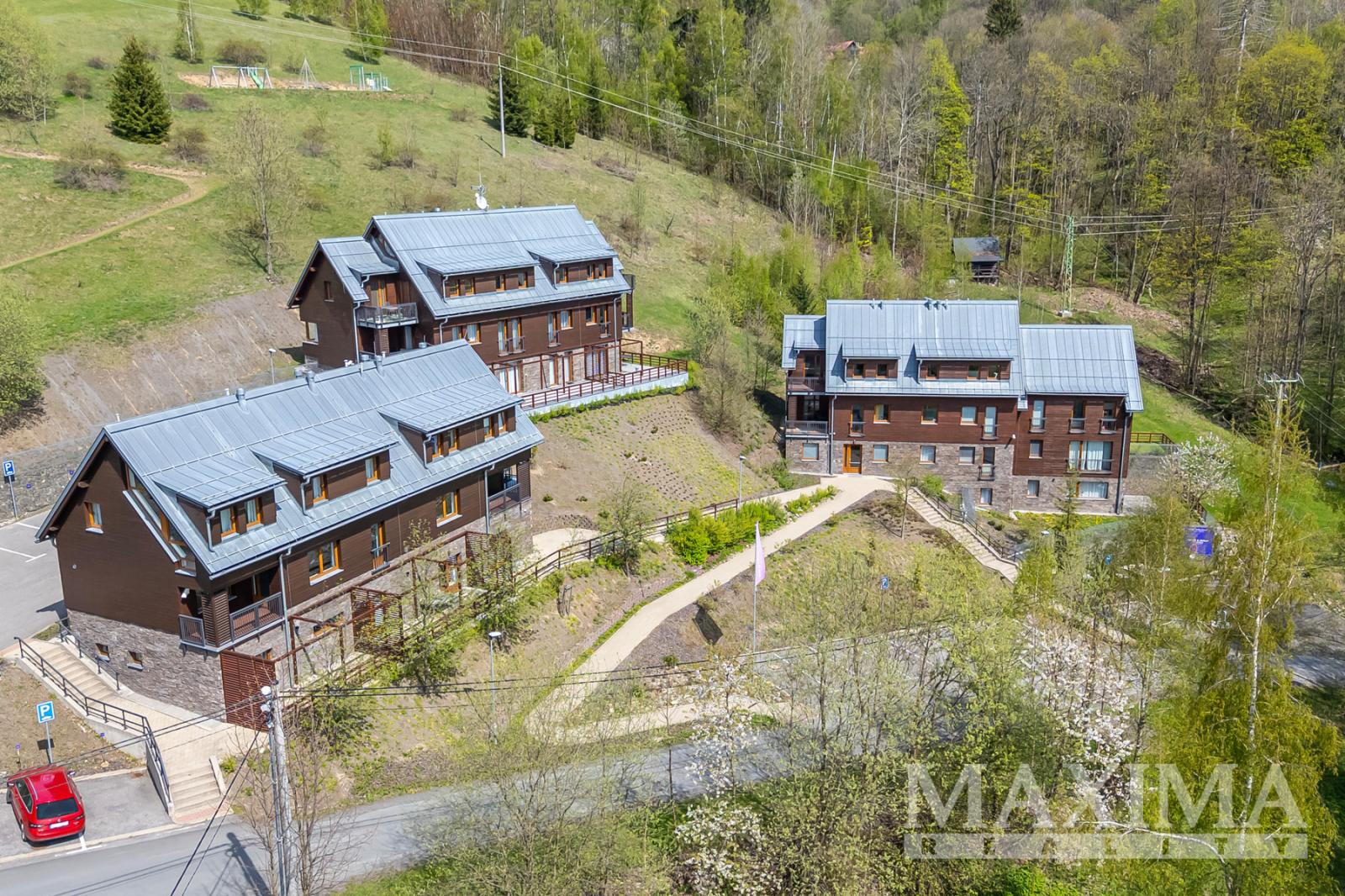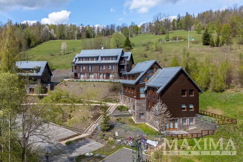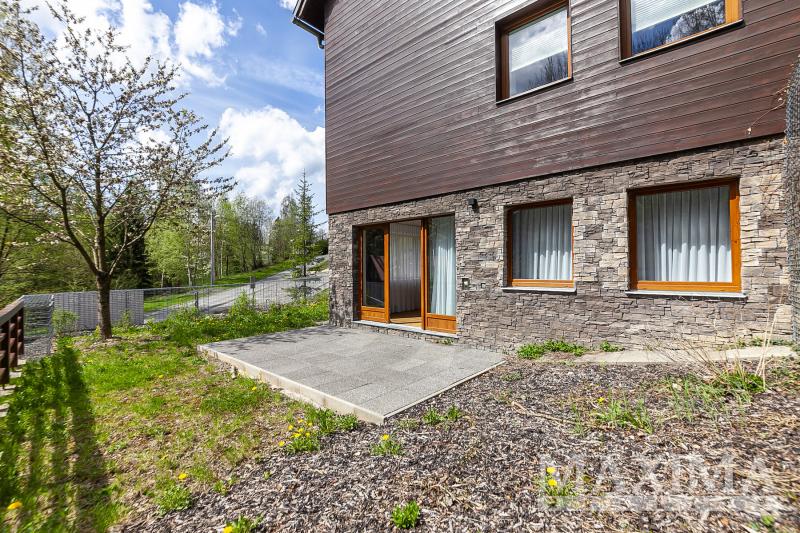 Exkluzivní nabídka prodeje apartmánu 3kk o velikosti 74,2 m2 s terasou 34,3 m2 a zahradou 75,7 m2 v horské obci Bratrouchov, Jablonec nad Jizerou v západních Krkonoších - v oblasti Krkonošského národního parku. Apartmán je prodáván i s 1/10 podílem na Wellness, které se nachází v hlavní budově areálu.