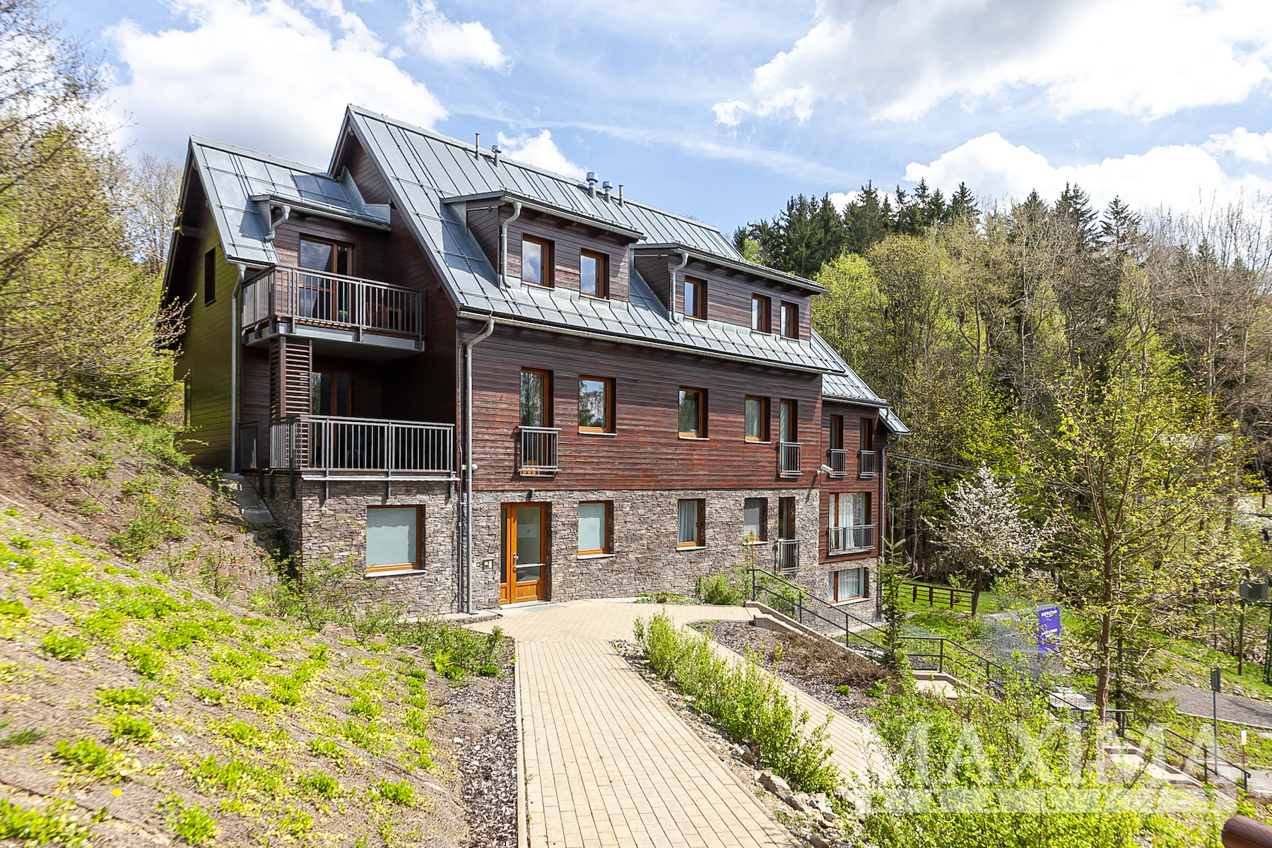 Exkluzivní nabídka prodeje apartmánu 3kk o velikosti 74,2 m2 s terasou 34,3 m2 a zahradou 75,7 m2 v horské obci Bratrouchov, Jablonec nad Jizerou v západních Krkonoších - v oblasti Krkonošského národního parku.