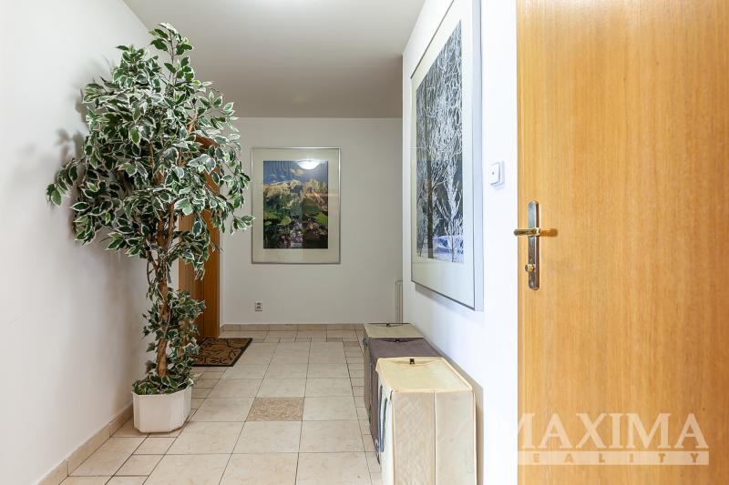 Prostor bytu situovaný v 5. a 6. patře s výtahem je v současnosti rozdělen na obývanou část 80 m2 a další prostor o ploše 58 m2 spojený s bytem společným vchodem, který můžete využít pro rozšíření plochy bydlení o další místnosti až na 138 m2, případně pro podnikání, ateliér, malý sál na cvičení apod. Ve spodním patře bytu naleznete předsíň se vstupem, obývací pokoj, ložnici, východ na terasu a schody do horního patra. V horní části nad schody se nachází prostorný pokoj s kuchyňským koutem, koupelna a dva prostory využívané jako komora a šatna.