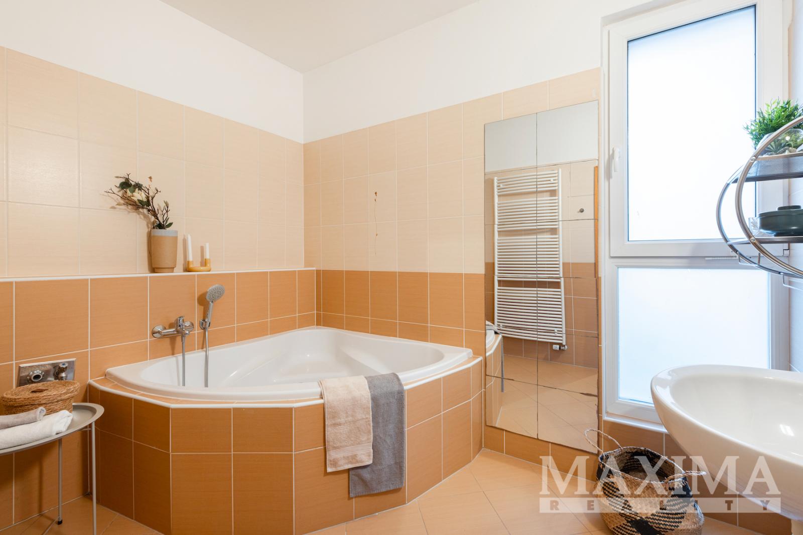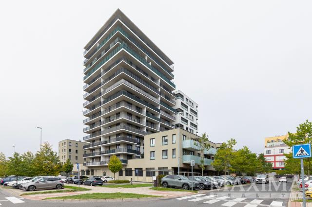 Byt se nachází ve 2. nadzemním podlaží moderního domu s výtahem a je ve výborném stavu. Dispozice zahrnuje ložnici o velikosti 12,4 m2, pracovnu 10,6 m2, obývací pokoj s kuchyňským koutem o rozloze 23,5 m2, koupelnu s vanou 5,7 m2, samostatnou toaletu 1,3 m2 a předsíň 9,2 m2. Ze všech obytných místností je přímý vstup na prostorný balkon, který nabízí dostatek místa pro posezení a odpočinek.