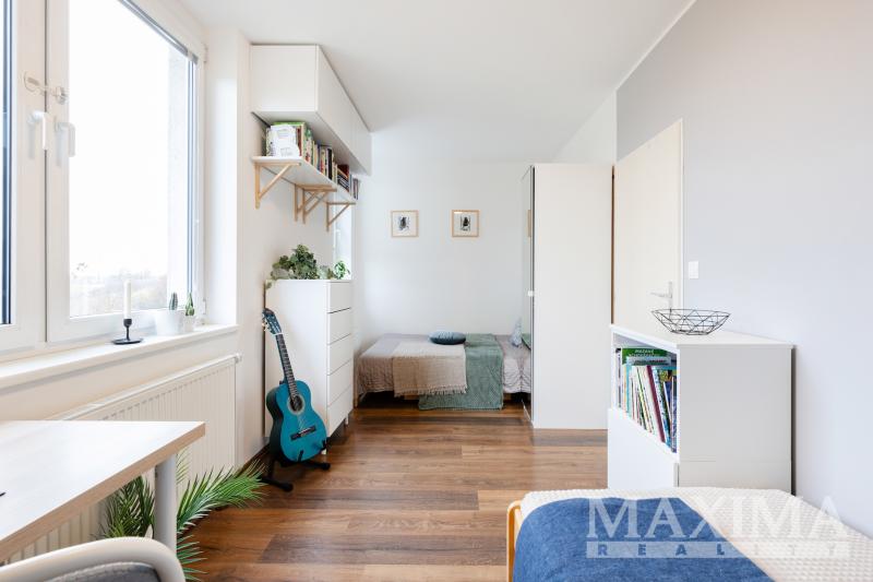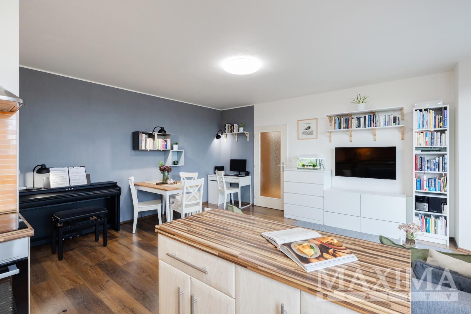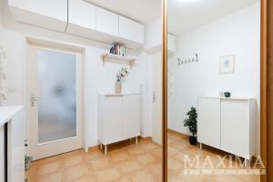Nabízíme k prodeji útulný a klidný byt s parkovacím místem v městské části Praha 9 - Letňany. Byt se nachází ve 3. patře (4. NP) pětipatrového cihlového domu s výtahem. Dispozičně je řešen jako 2+kk o celkové ploše 56,31 m2 + balkon 3,25 m2. Součástí bytu je obývací pokoj (21,53 m2) se vstupem na balkon a s kuchyňským koutem (4,66 m2) vybaveným kuchyňskou linkou, jejíž součástí je také spíž (1,91 m2), dále ložnice (14,13 m2), koupelna (5,01 m2) s vanou, umyvadlem a toaletou a chodba (7,70 m2). K bytu náleží také sklep o výměře 1,37 m2.