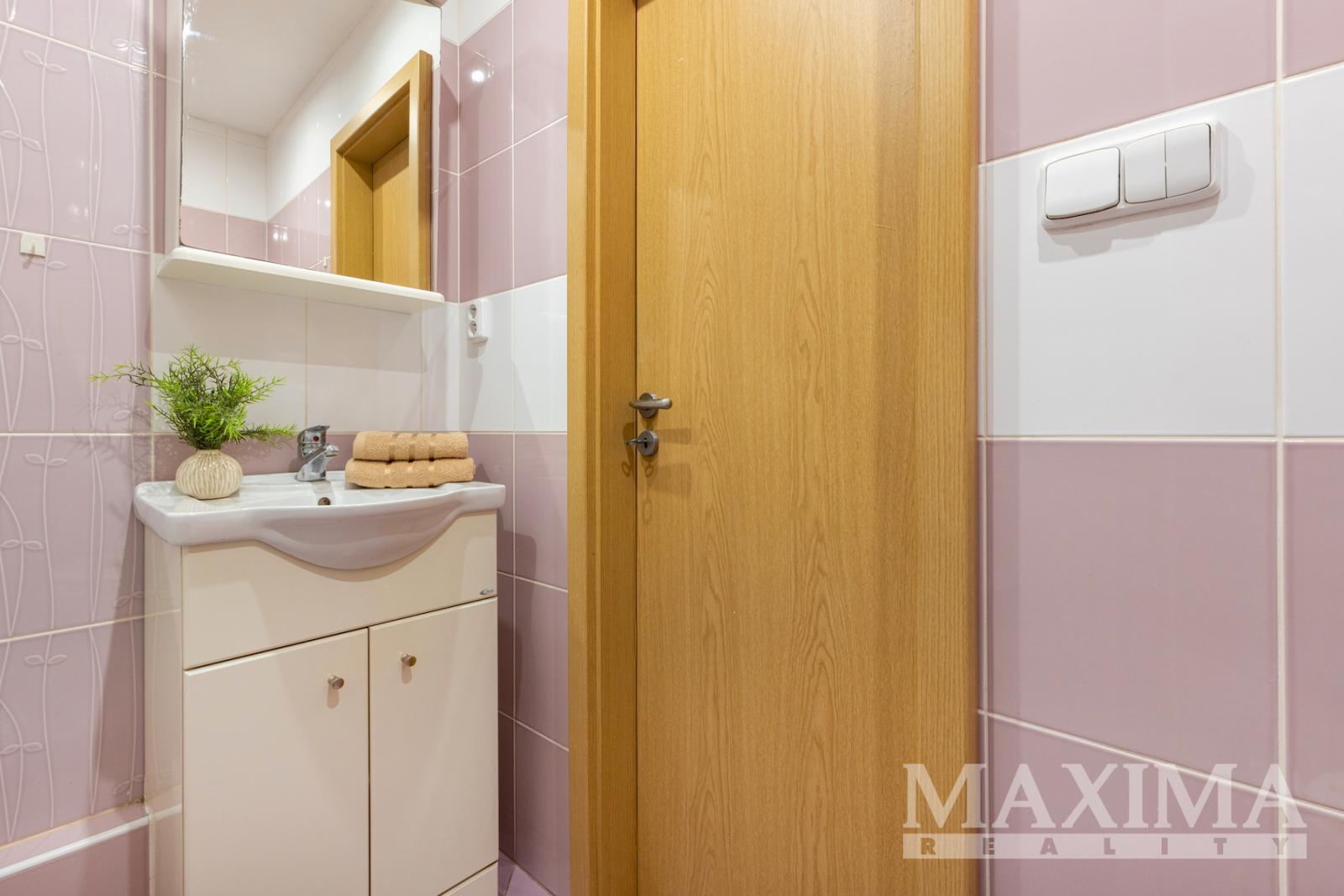 Byt byl cca 10 let zrekonstruován a je připravený k okamžitému nastěhování. Výměry obytných místností jsou: 21,82 m2 (obývací pokoj s kuchyňským koutem) a 10,63 m2 (ložnice). Dále byt sestává z předsíně s vestavěnými skříněmi, koupelny a samostatného WC. K bytu náleží sklepní kóje o výměře 1 m2.