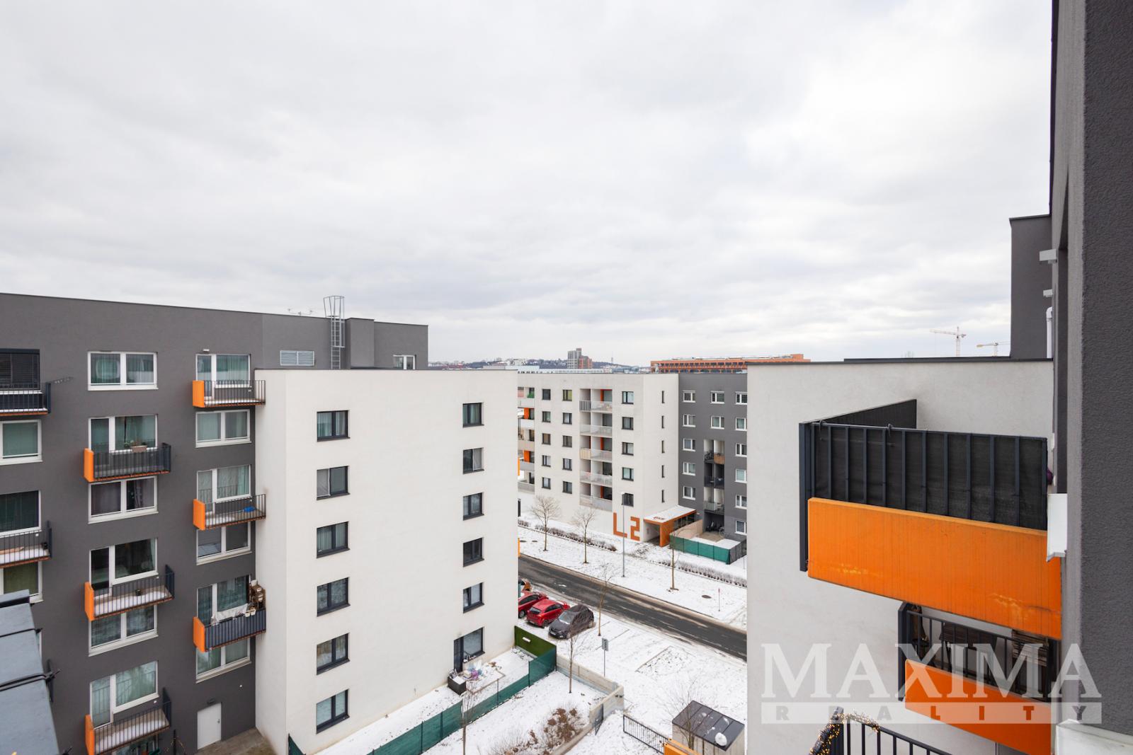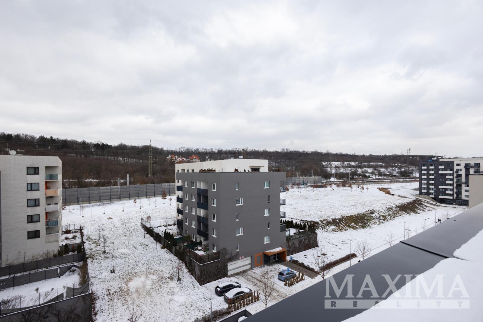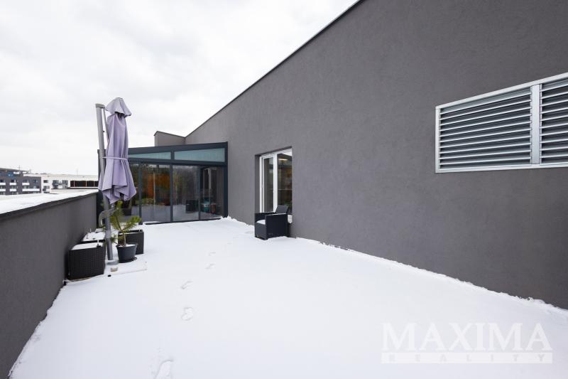 Byt je umístěn v posledním, sedmém nadzemním podlaží domu s výtahem a nabízí celkovou užitnou plochu 177,4 m2. Podlahová plocha interiéru činí 110 m2 a je doplněna o velkorysou terasu o rozloze 59,1 m2 a balkon o velikosti 8,3 m2. Součástí bytu je garážové stání a sklepní kóje o výměře 5,8 m2. Parkovací stání se nachází v prvním podzemním podlaží domu. Bezbariérový byt poskytuje dostatek soukromí i komfortu pro rodinné bydlení.