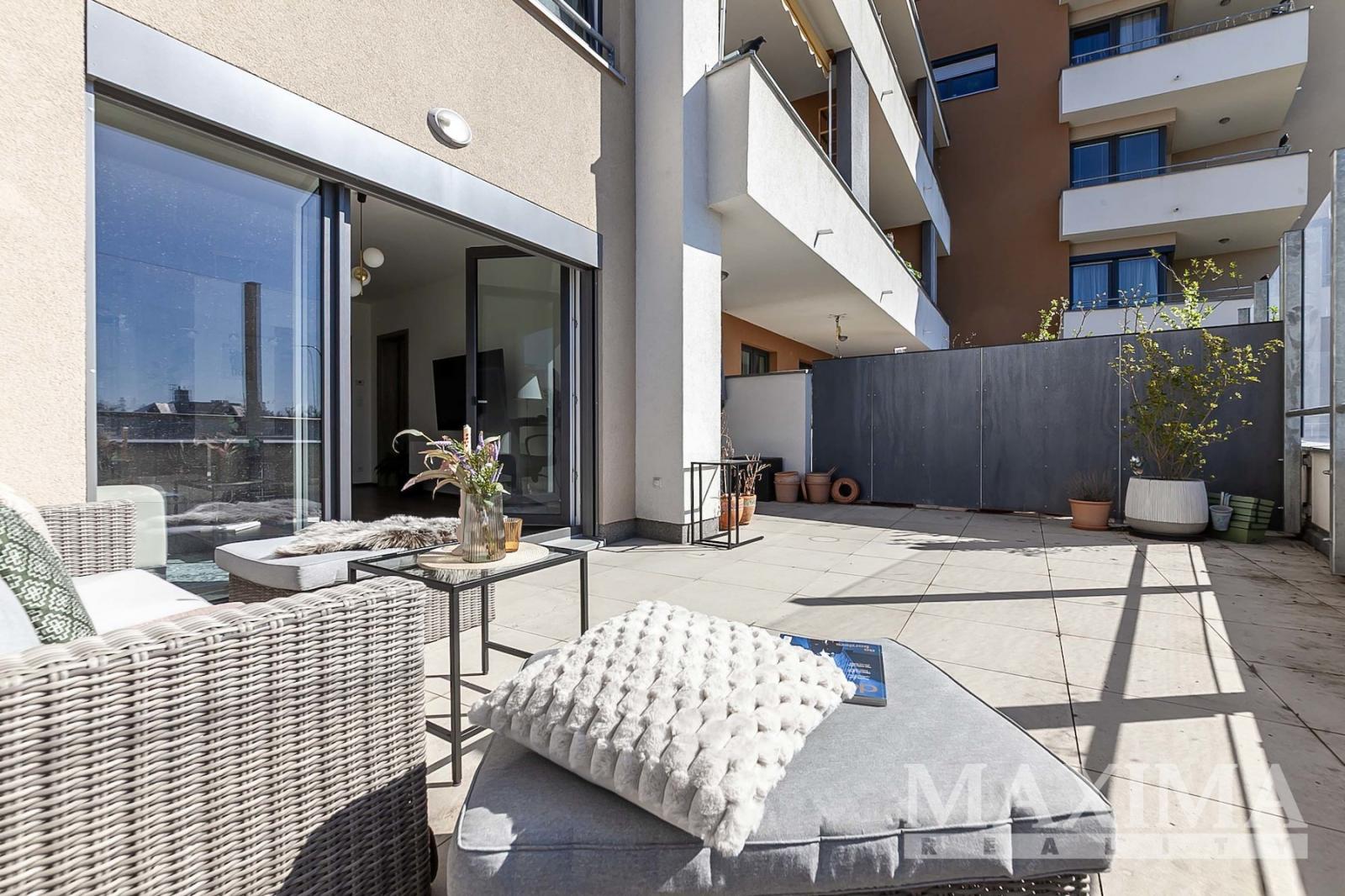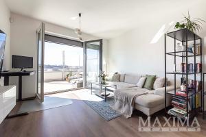 Exkluzivní nabídka krásného světlého bytu 2+kk o výměře 52,1 m2 + terasa 36,1 m2 + garážové stání v atraktivní rezidenční lokalitě v blízkosti Modřanské rokle. Jižně orientovaný, moderně zařízený byt se nachází v 1. podlaží novostavby z roku 2019.