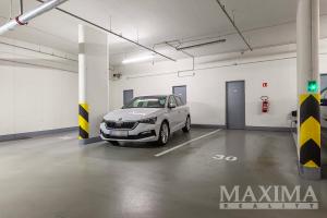 K bytu také náleží sklepní kóje o výměře 3,3 m2 a parkovací stání ve společné garáži. K dispozici je také společná kočárkárna/kolárna v domě.