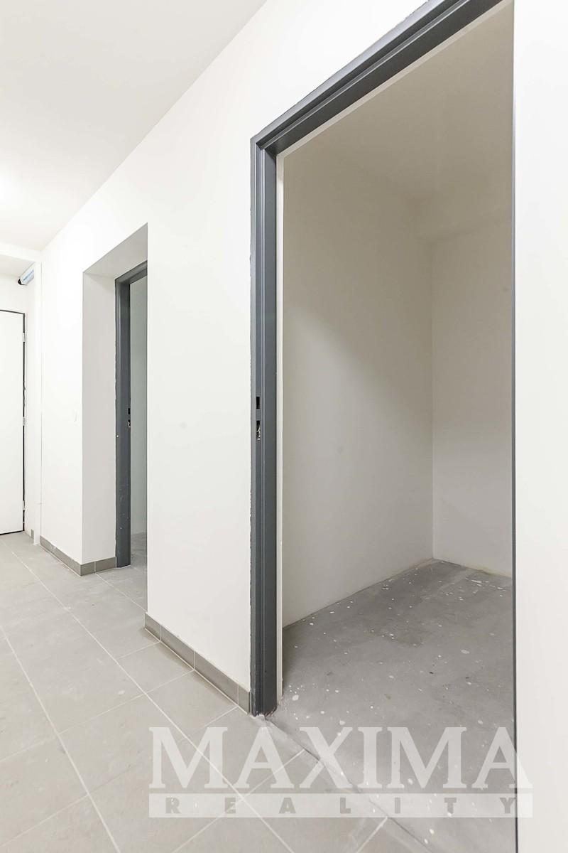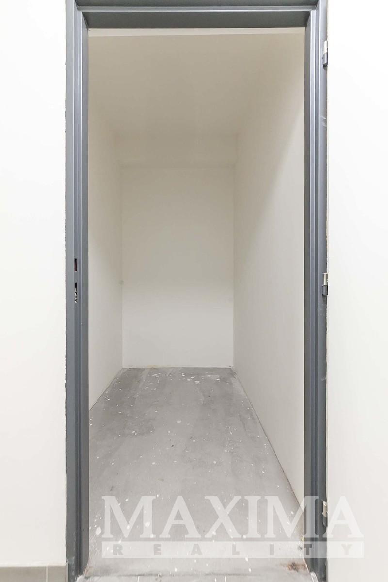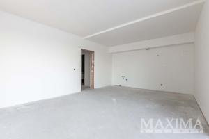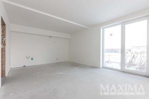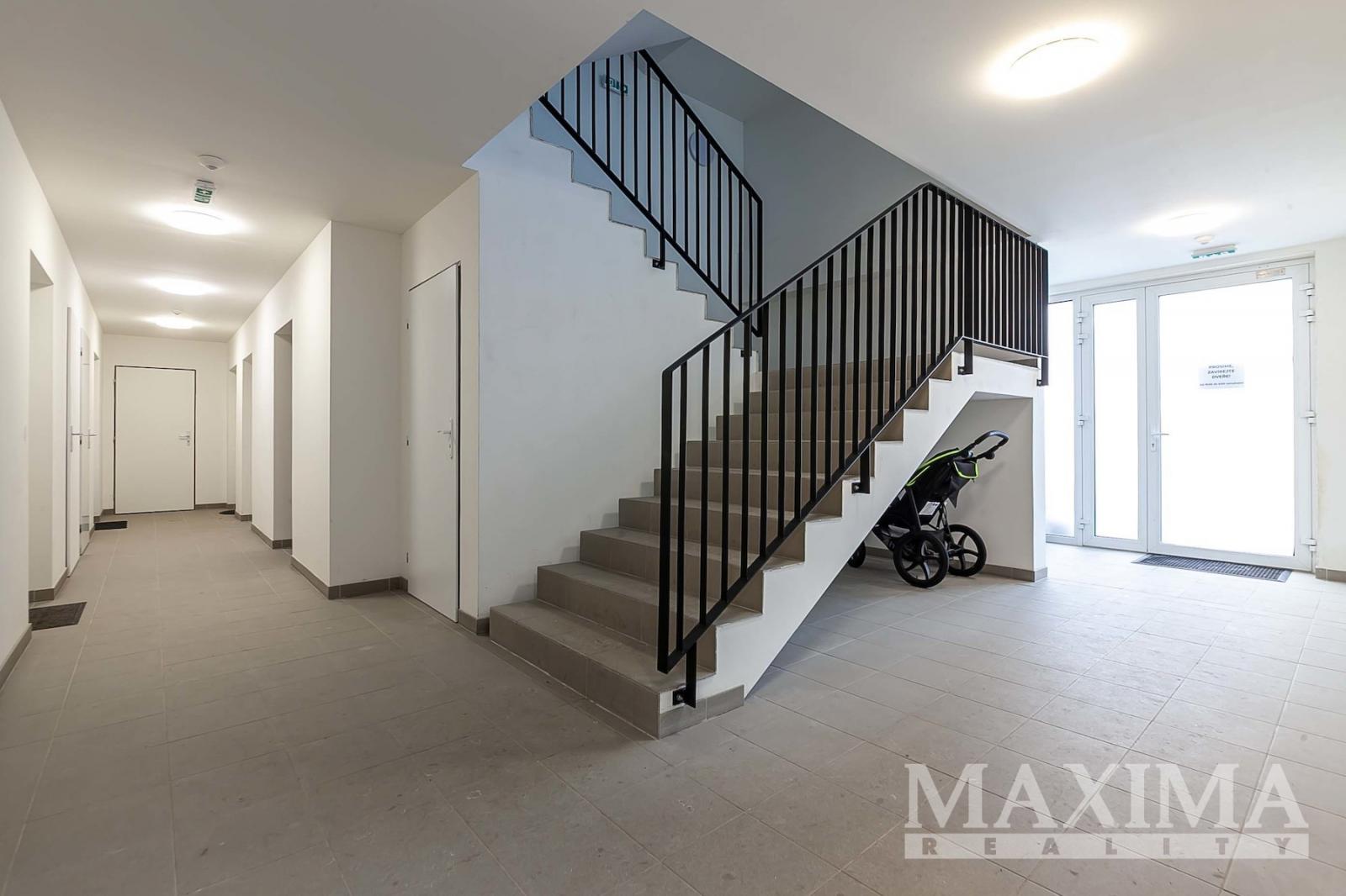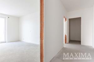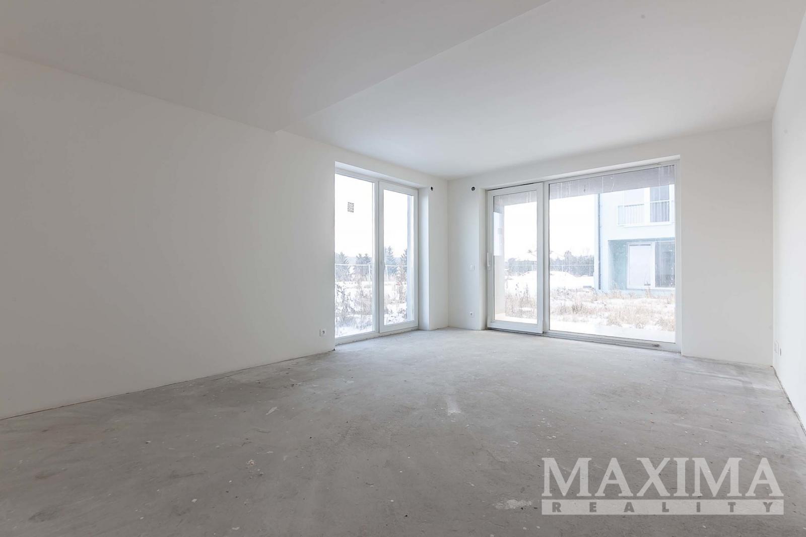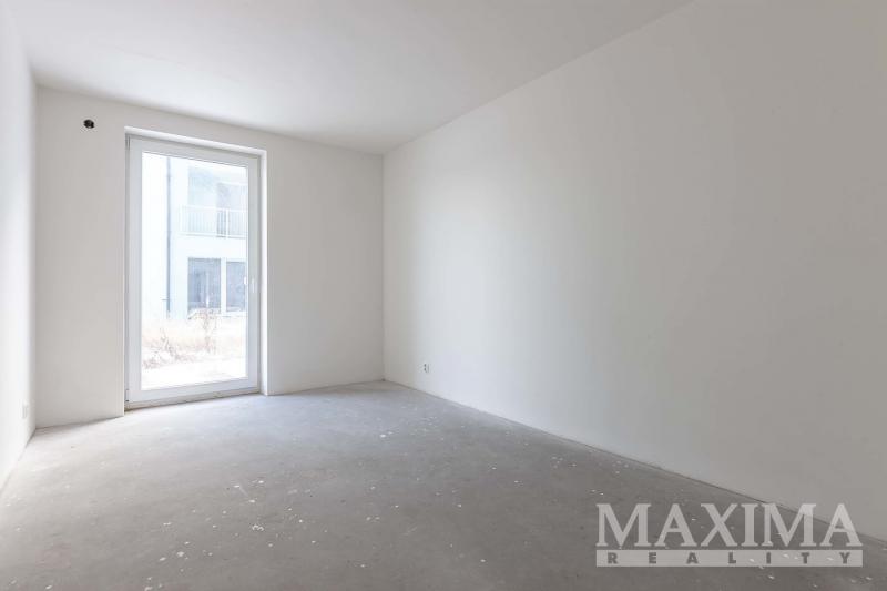 Byt je ve stavu před dokončením - koupelna je již kompletně dokončena, podlahy a interiérové dveře nejsou instalovány, což dává budoucímu majiteli možnost dokončit interiér dle vlastních představ.