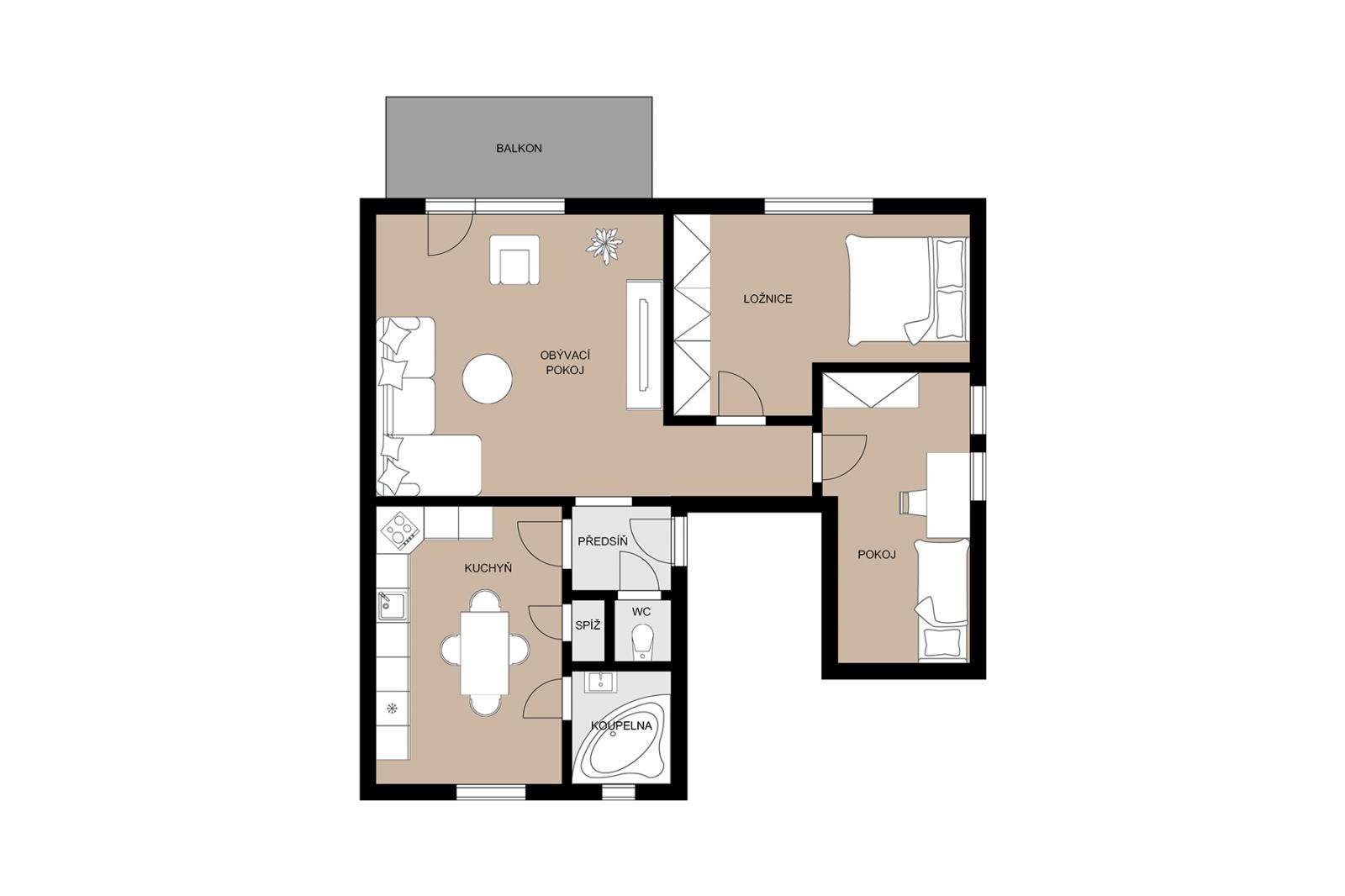- Byt s výměrou 63 m2, který nabízí kompaktní, ale praktické bydlení s balkonem 6 m2, ze kterého se nabízí podmanivý panoramatický výhled na Prahu