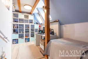 Bytová jednotka vznikla přestavbou půdních prostor v roce 2005; disponuje plastovými okny (dvojsklo) ve dvou pokojích předokenními žaluziemi; bezpečnostními vstupními dveřmi z roku 2024; střešní okna VELUX (dřevo); kuchyňská linka disponuje všemi elektrickými spotřebiči; koupelna s vanou; podlahy _ PVC, plovoucí laminátová a keramická dlažba; vytápění bytové jednotky - vlastním kondenzačním plynovým kotlem.