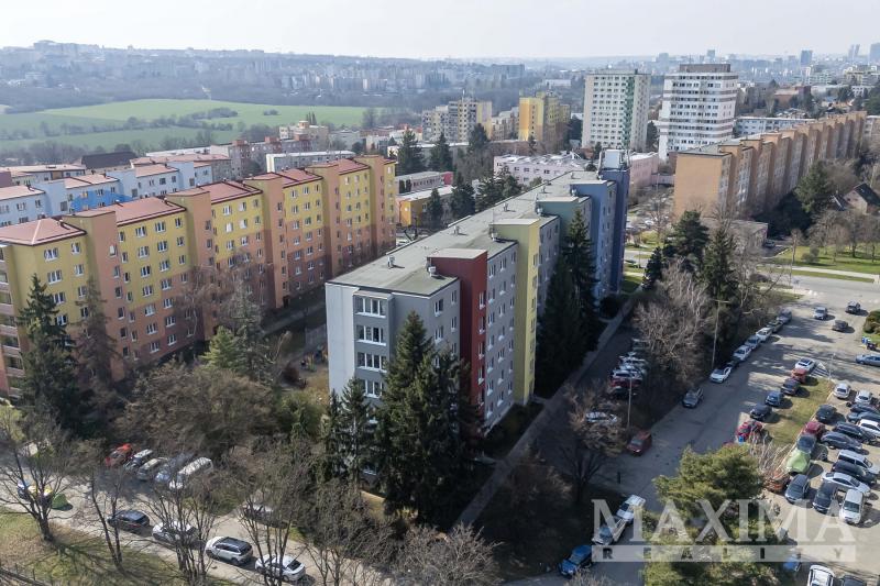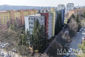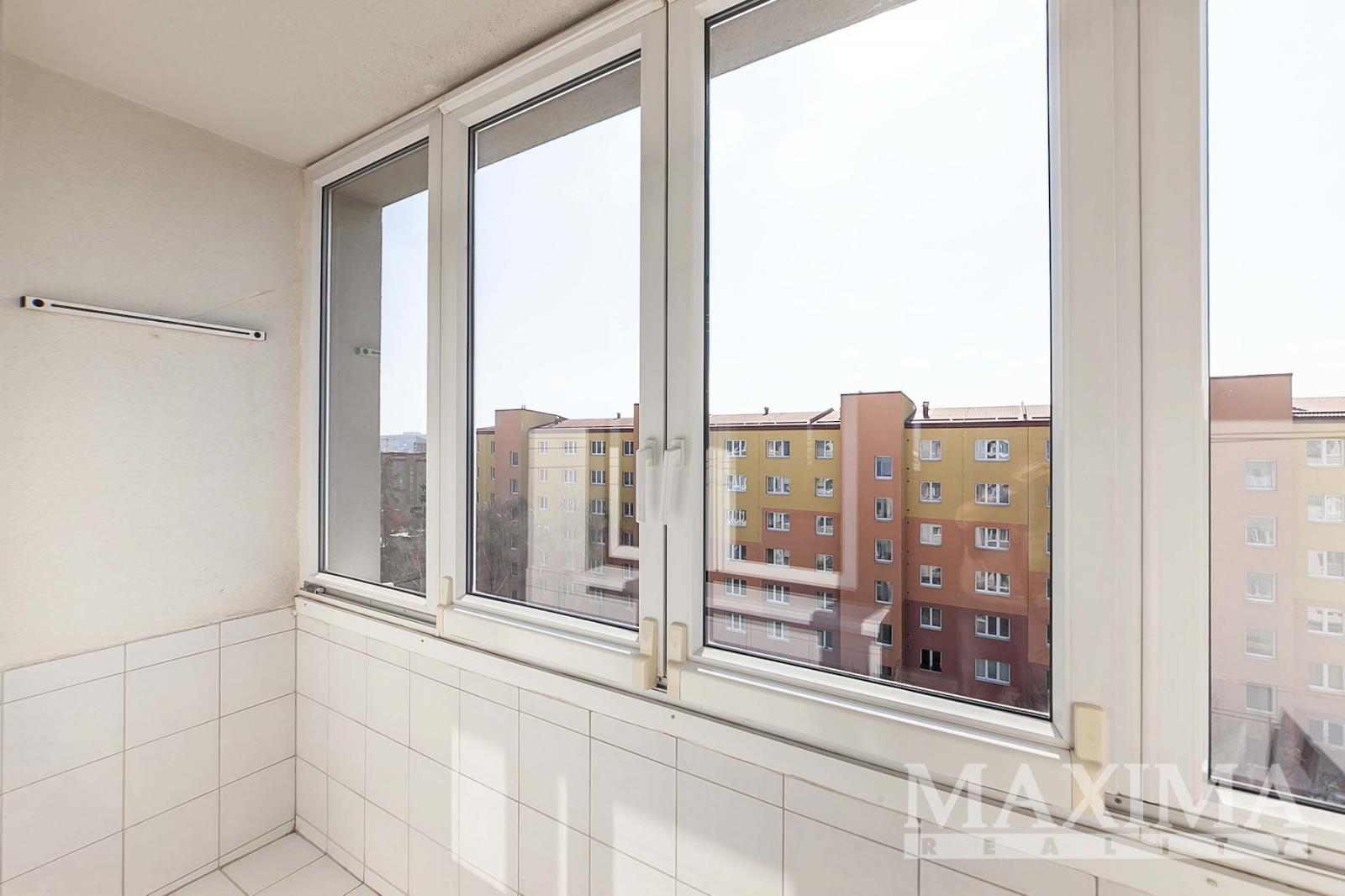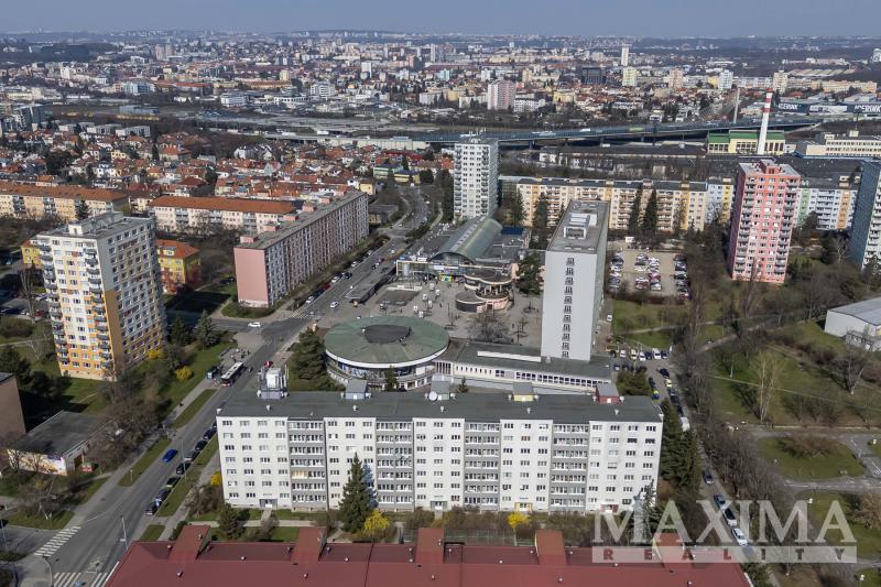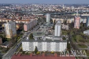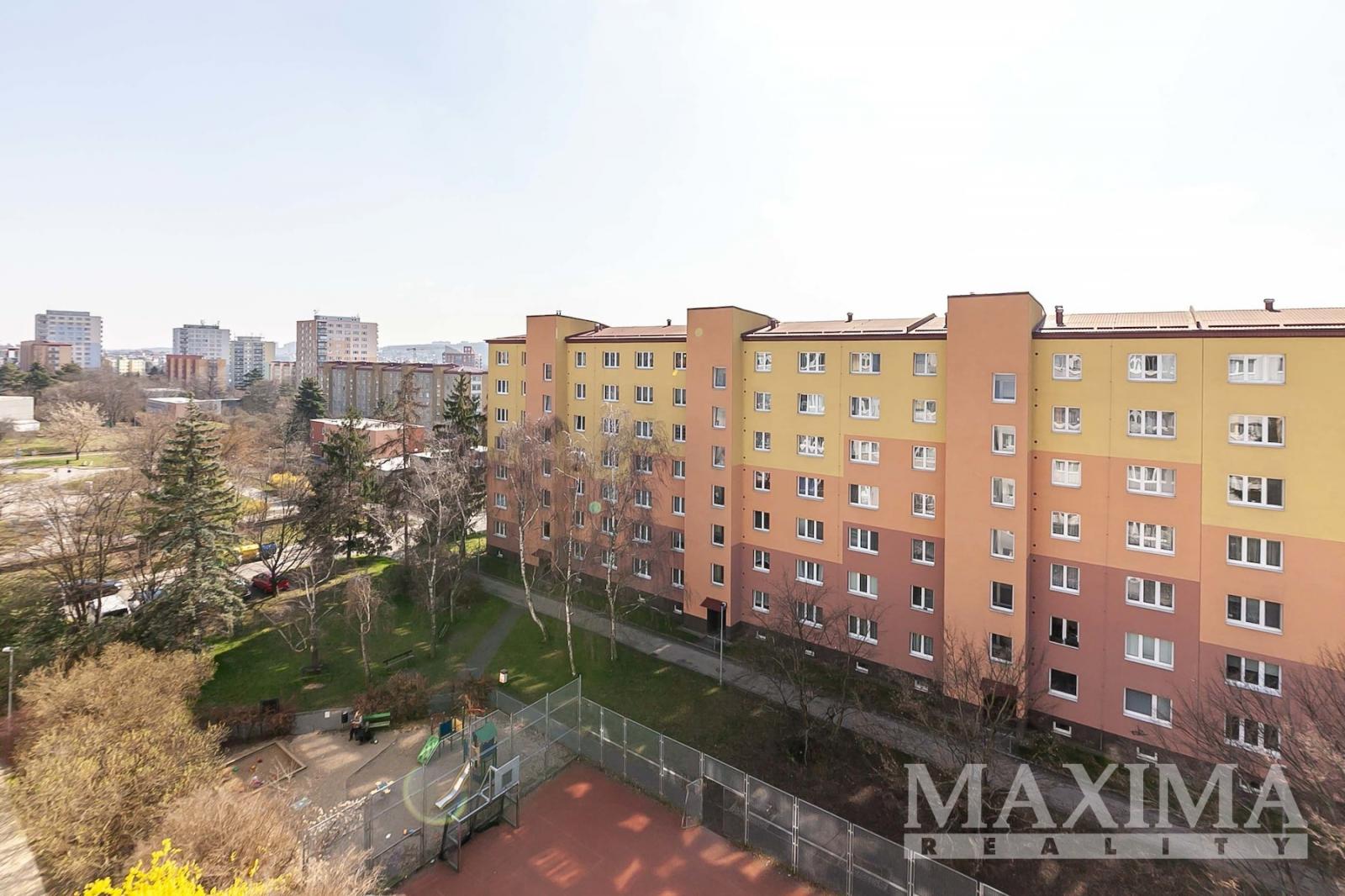 - z okna kuchyně a dalšího pokoje otevřený výhled směrem na Koloseum a OC Cíl, při jihovýchodní straně bytového domu parková úprava a hřiště na míčové hry.