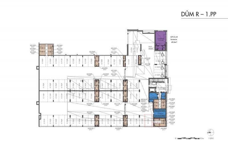 K bytu je možné dokoupit parkovací stání v garážích hned vedle sklepní kóje za 800.000,-Kč.