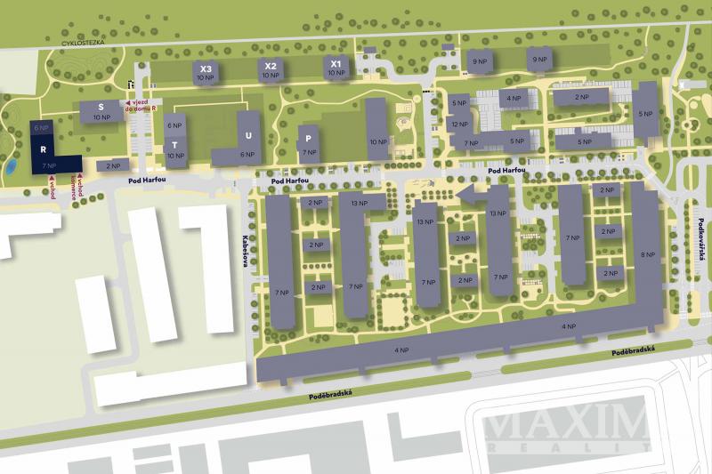 Vysočany nabízí kompletní občanskou vybavenost _ obchody, restaurace, školy, školky, fitness centra, OC Galerie Harfa, O2 arenu i park Podvinní. Tramvajová zastávka Kabešova je pár minut chůze od domu, s přímým spojením na metro B _ Palmovka a Českomoravská. Do metra i obchodního centra se dostanete přibližně za 10 minut.