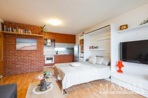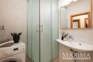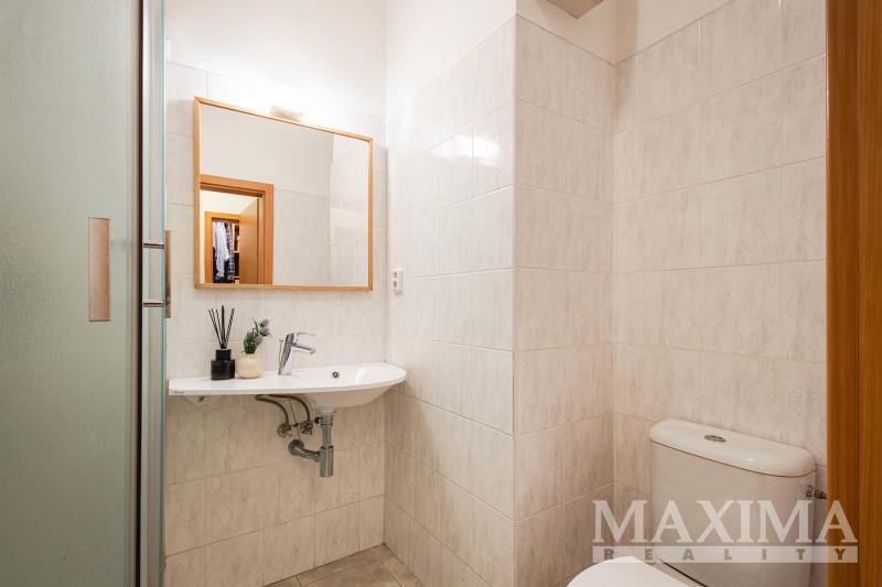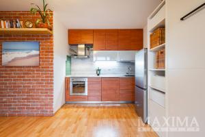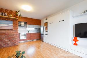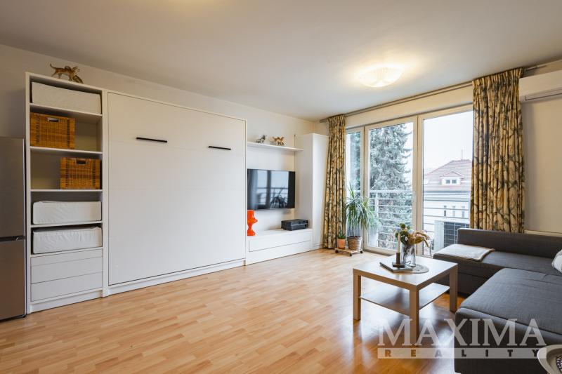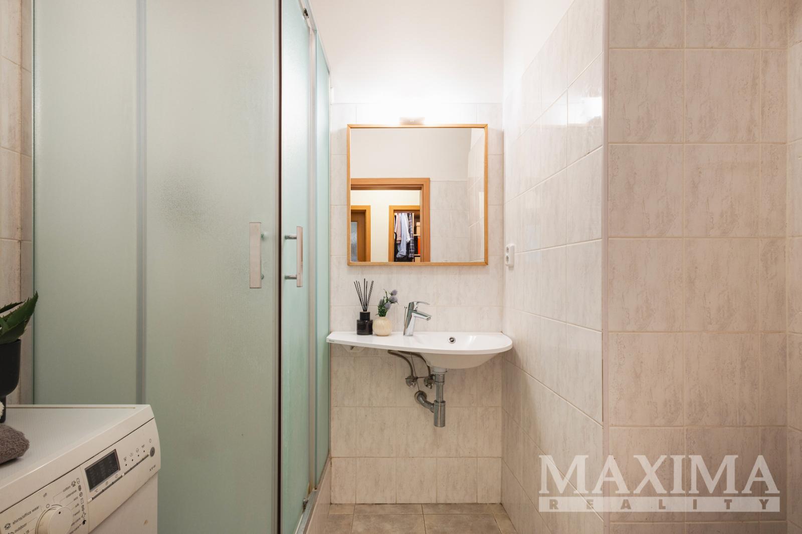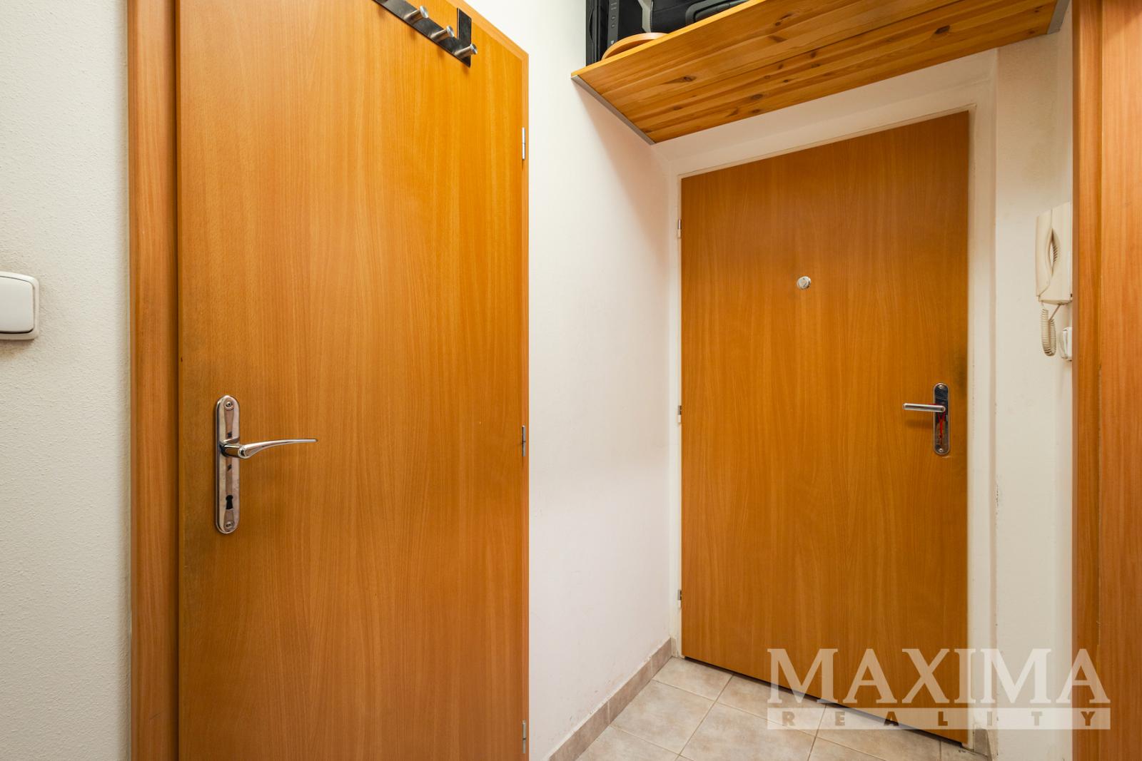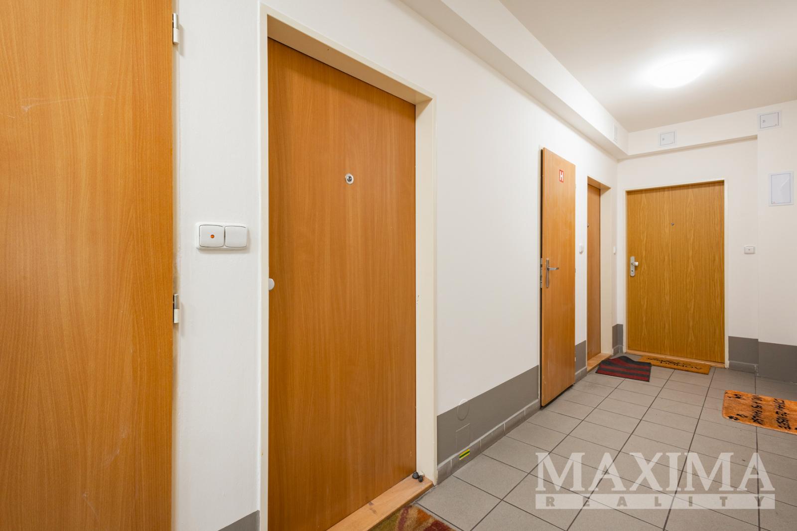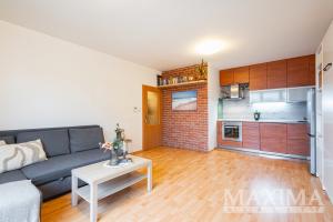Byt je v původním stavu a je po celý den příjemně prosvětlený. Dispozici tvoří obytný pokoj s vestavěnou sklopnou postelí, který je propojen s kuchyňským koutem. Kuchyňská linka je vybavena elektrickým sporákem s troubou, digestoří, myčkou nádobí a lednicí. V předsíni se nachází vstup do koupelny se sprchovým koutem a toaletou (vhodná k rekonstrukci), dále samostatná komora (šatna) o výměře 1,79 m2. V celém bytě je položena plovoucí podlaha, pouze v koupelně je dlažba. Okna jsou orientována na východ. Vstup do domu je zabezpečen čipem. Velmi nízké měsíční poplatky SVJ včetně fondu oprav činí 2.930 Kč, záloha na elektřinu je přibližně 800 Kč měsíčně, vhodné jako investiční příležitost.