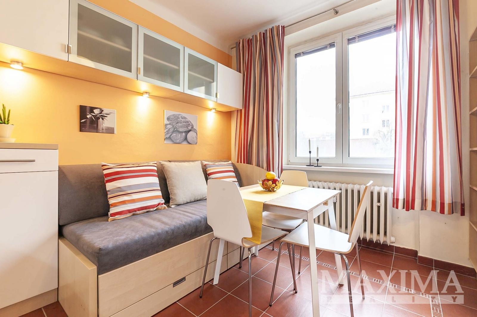 Byt se prodává vybaven a zařízen nábytkem, v kuchyni je rozkládací pohovka, kde mohou pohodlně přespat dva dospělí lidé, zůstane mimo jiné také jídelní stůl, závěsné skříňky, TV stěna, konferenční stolek, psací stůl a sedačka.