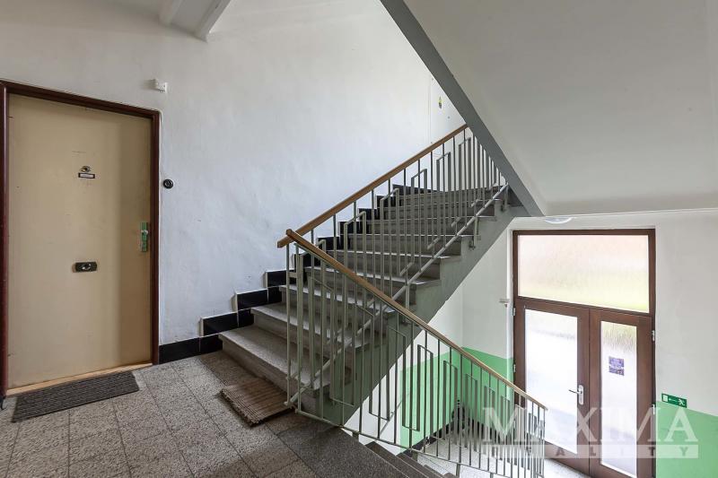 Byt se nachází v prvním patře cihlového domu bez výtahu, dům je po částečné revitalizaci, byla dělána fasáda, vstupní prostory, jsou zde plastová okna.