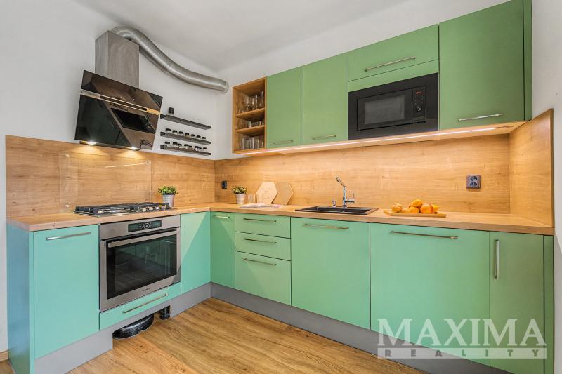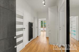Celková plocha jednotky činí 73,1 m2, z toho obytná plocha 62,5 m2, sklep 8,5 m2 a dva balkony o velikosti 1,1 m2 a 1,1 m2. Praktická dispozice nabízí obývací pokoj s kuchyňským koutem, ložnici, dětský pokoj, šatnu, komoru, koupelnu s vanou a prostorem pro pračku, samostatnou toaletu a vstupní předsíň. Z obytných pokojů je přímý vstup na dva samostatné balkony o velikosti 1,12 m2 a 1,09 m2, které poskytují příjemné místo pro odpočinek. Byt má zděné jádro, plastová okna a podlahy v kombinaci parket, vinylu a dlažby. Vytápění je centrální s vlastní kotelnou v domě. Součástí nabídky je také prostorný sklep, který je aktuálně využíván jako fitness a pracovna. Byt prošel kompletní rekonstrukcí včetně elektroinstalace, stoupaček, podlah i jednotlivých místností, což umožňuje okamžité nastěhování bez dalších investic.
