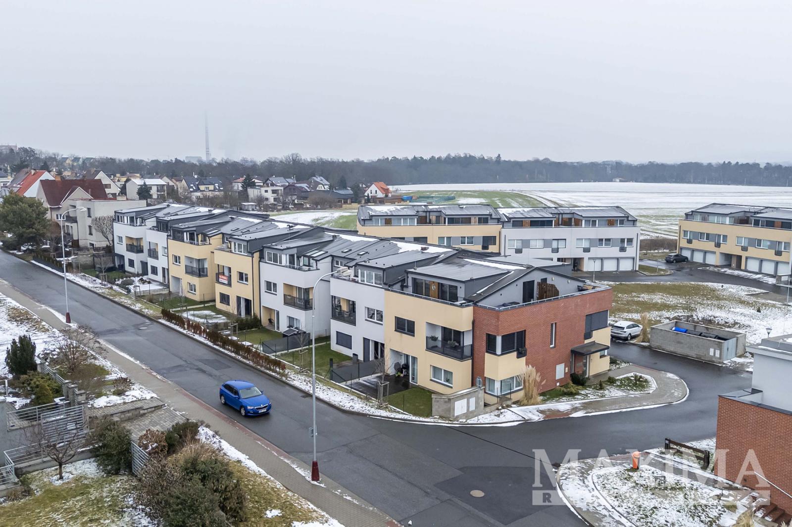 Byt se nachází v 1. patře (2. NP) moderního řadového rezidenčního projektu Dubce. Cihlový dvoupodlažní dům se třemi bytovými jednotkami, dokončený v roce 2022, byl navržen s důrazem na nadčasovou architekturu a nadstandardní provedení.