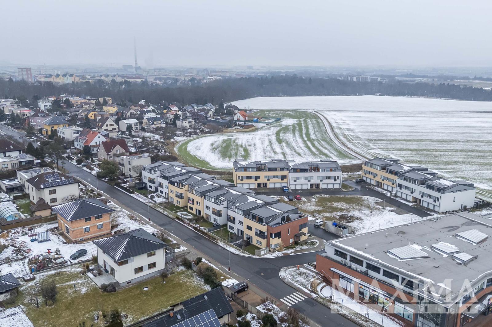 Lokalita nabízí výborné dopravní spojení -autobusová zastávka v docházkové vzdálenosti zajišťuje přímé spojení na stanici metra Černý Most. Nákupní centrum s prodejnou Billa, drogerií Teta drogerie a fitness centrem je dostupné pěšky do 5 minut. V okruhu do 500 m se nachází mateřská i základní škola. Historické centrum s dominantou v podobě hradu a kompletní občanskou vybaveností je dostupné jen několik minut chůze od domu. Velkou výhodou je také rychlá dostupnost Prahy - dojezdová vzdálenost po dálnici je přibližně 30 minut.