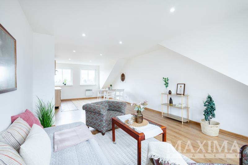 Byt se nachází ve 3. patře domu bez výtahu a jedná se o půdní vestavbu zbudovanou v roce 2015. Okna jsou orientována na severozápad a jihovýchod. V obytných místnostech je plovoucí podlaha, v koupelně a na samostatném WC je dlažba. Ohřev vody a vytápění je řešeno elektřinou.