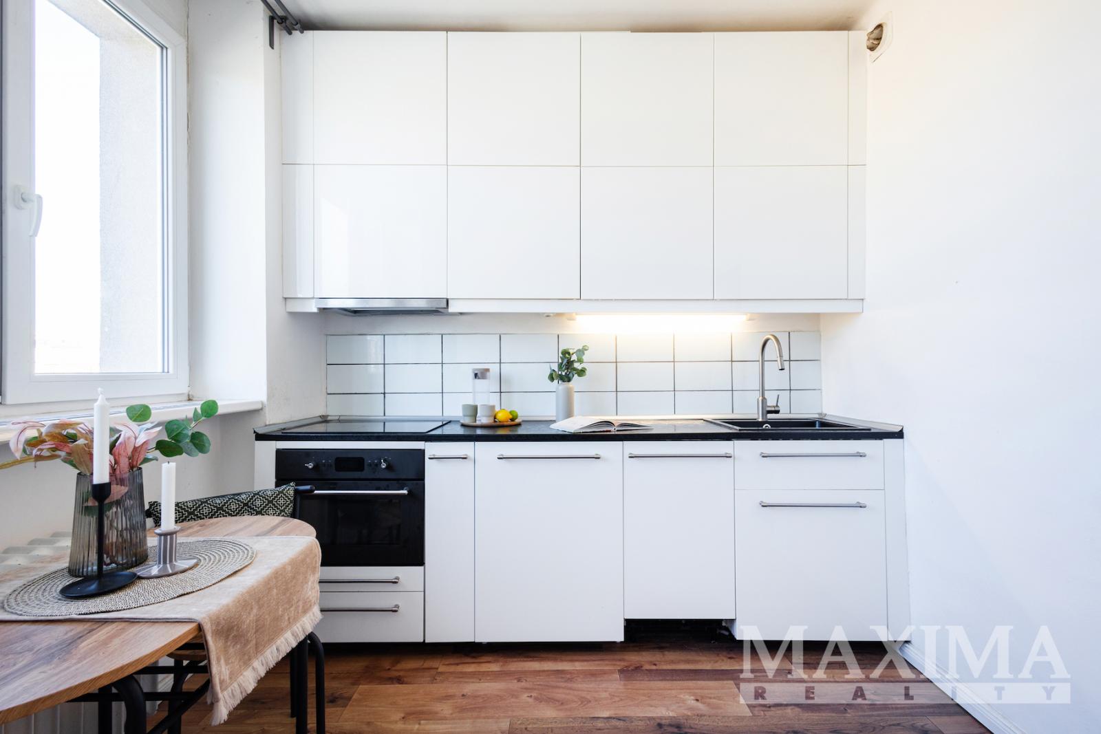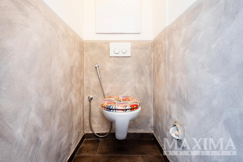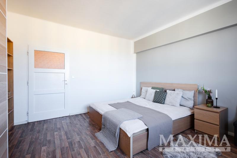 Samotný byt prošel kompletní a velmi vkusnou rekonstrukcí, která zahrnovala nové rozvody elektřiny a instalaci kvalitních plovoucích podlah v dekoru tmavého dřeva, jež prostupují celým interiérem a dodávají mu útulnou atmosféru. Díky umístění v nejvyšším patře a orientaci na západ je byt neuvěřitelně tichý a po celý den zaplavený přirozeným světlem. Velká plastová okna navíc nabízejí uklidňující výhled do dálky přes střechy okolních domů, který si nejlépe vychutnáte při západech slunce.