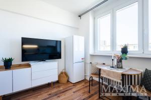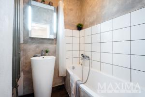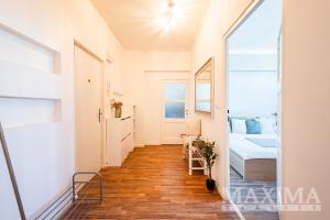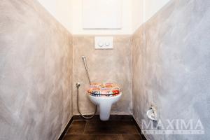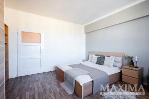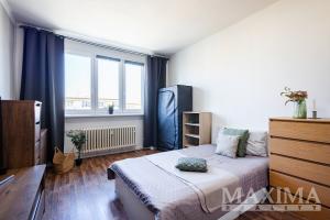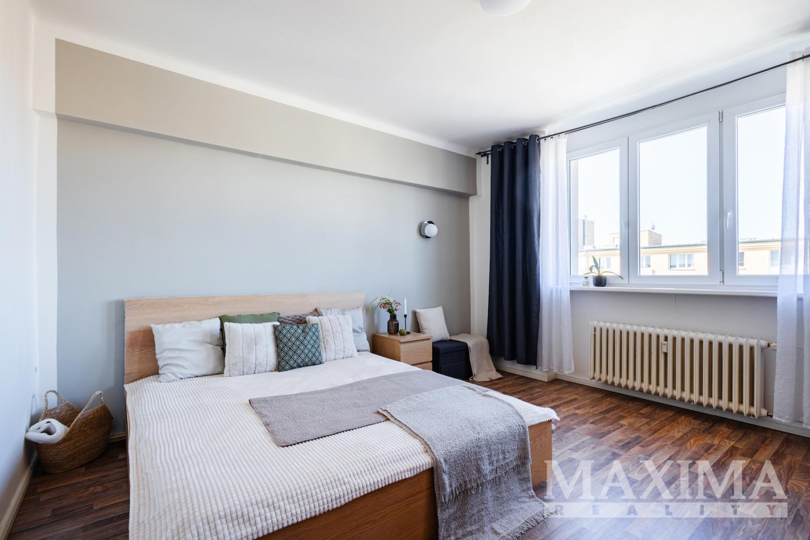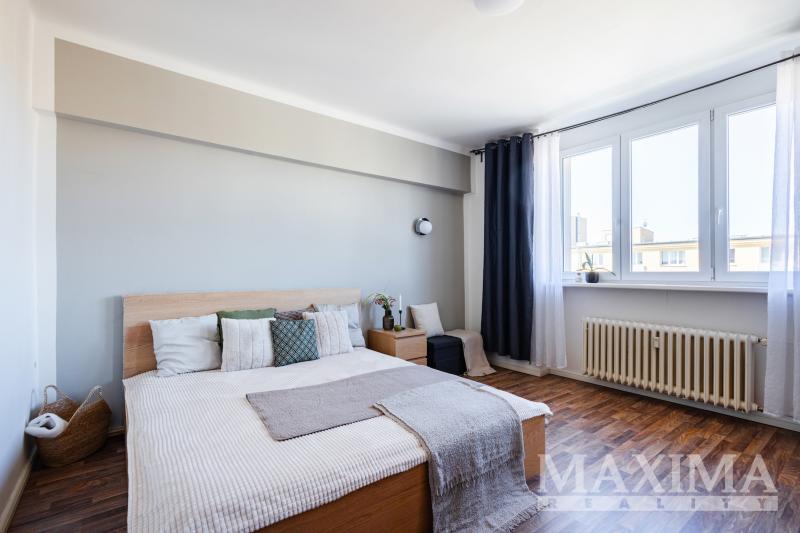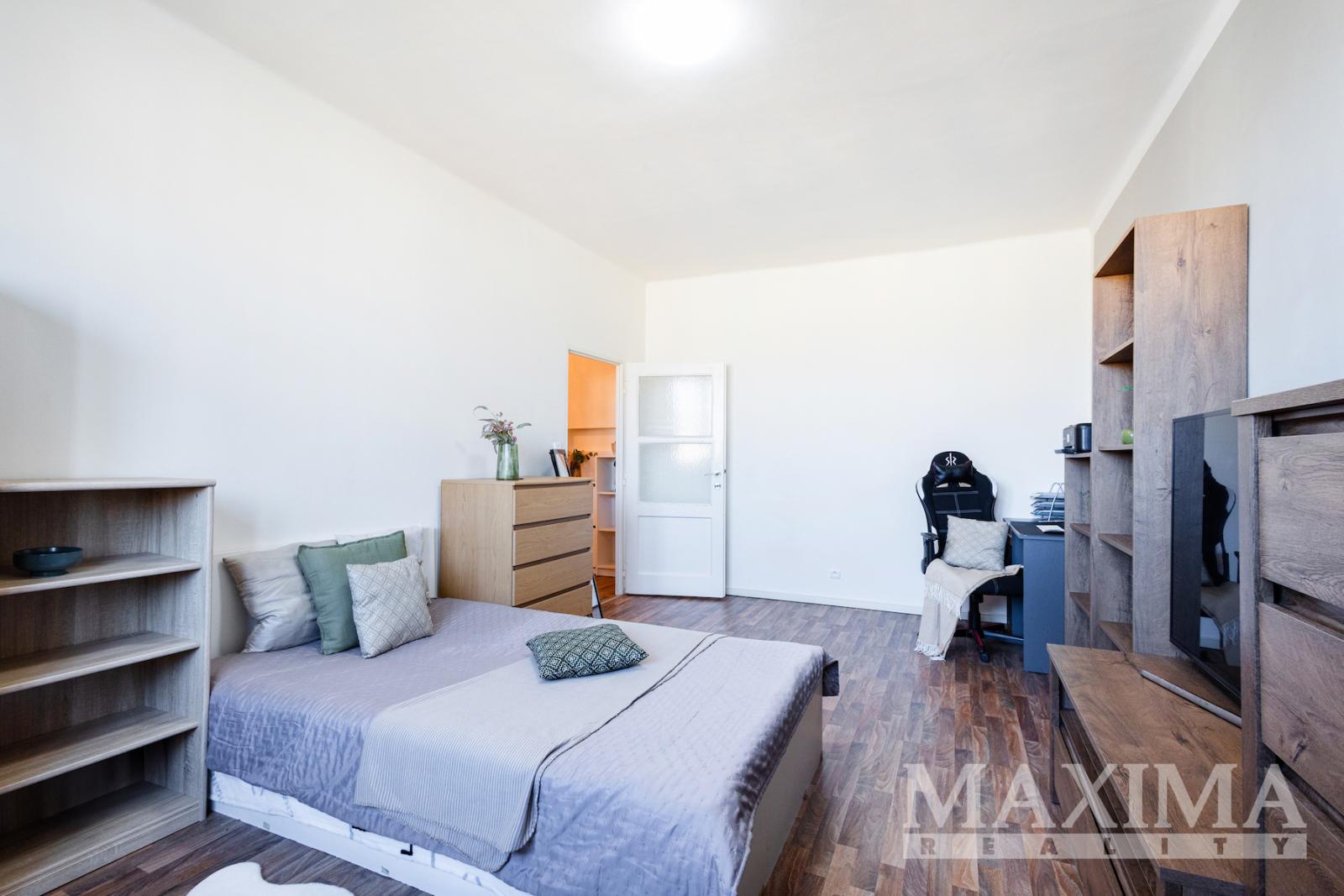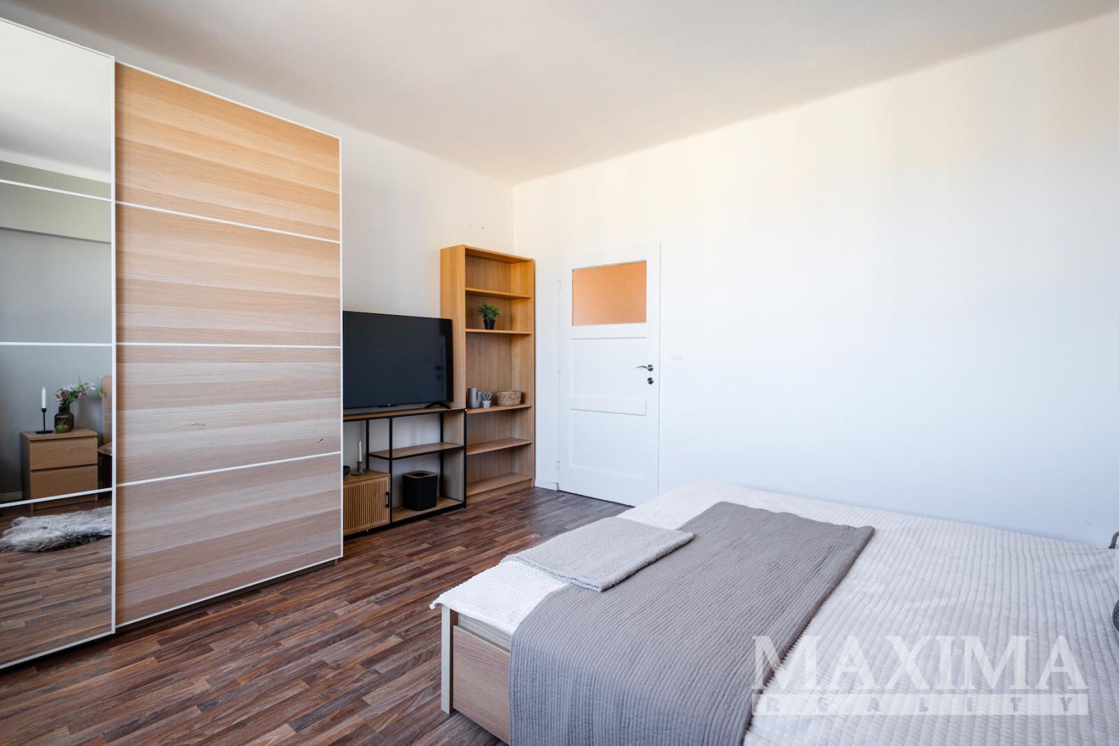 Dispozice bytu je řešena velmi prakticky. Dominantou je neprůchozí obývací pokoj a prostorná samostatná ložnice, kam se pohodlně vejde velká šatní skříň i další nábytek. Srdcem domova je oddělená moderní kuchyně s bílou linkou ve vysokém lesku a integrovanými spotřebiči, která plynule navazuje na příjemný jídelní kout u okna. Koupelna působí díky kombinaci bílých obkladů a betonové stěrky velmi nadčasově a je vybavena vanou, zatímco toaleta je umístěna samostatně. Velkým bonusem je vnitřní komora, kterou lze využít jako technickou místnost pro pračku a sušičku, čímž ušetříte drahocenné místo v koupelně.