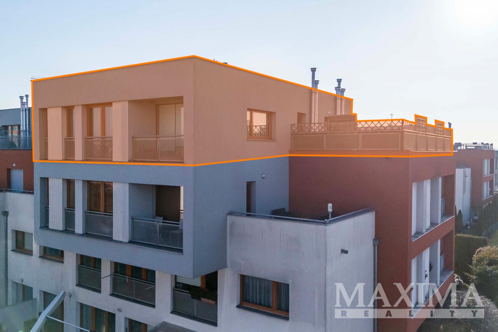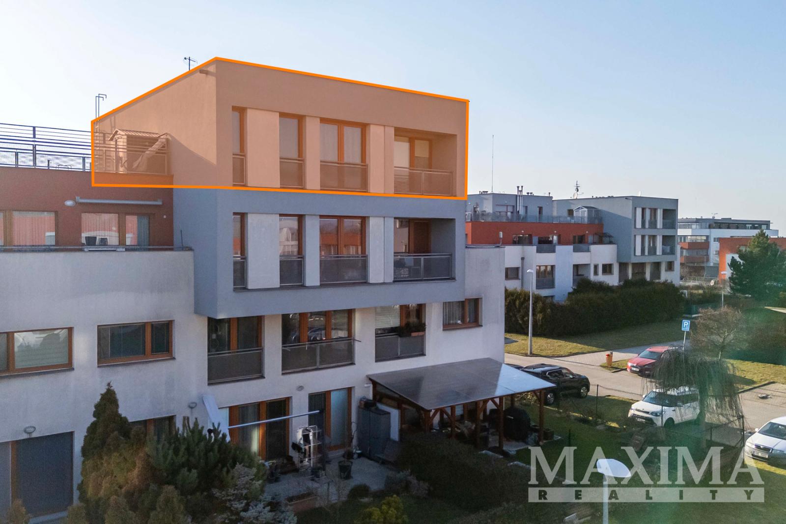 Lukrativní cena: v ceně garáž, sklep a další parkovací místo. Cenově zajímavá nabídka v porovnání s byty stejné velikosti v této pražské čtvrti. Exkluzivní nabídka jedinečné nemovitosti: prostorný byt 4+kk (celková plocha 179 m2) s pohledově chráněnou rozlehlou terasou, se značným odstupem od okolní zástavby, s otevřeným výhledem, lodžií, garáží a dalším parkovacím místem. Komfortní bydlení v metropoli s parametry bydlení v rodinném domě. Základní dispozice 4+kk/T/L, dále 2 koupelny, komora, technická místnost, hala s knihovnou, vstupní hala se šatnou. V suterénu velký sklep a garážové místo. Jednotka s celkovou plochou 179 m2: 113,3 m2 (čistá vnitřní plocha bytu bez nosných zdí a příček), 62,5 m2 (terasa), 2,8 m2 (lodžie), je situována ve 3. a 4. NP komorního bytového domu. Byt je uspořádán mezonetově tak, že vstupní podlaží reprezentuje pouze vstupní hala se šatnou a komorou, oddělená bezpečnostními dveřmi od společných prostor komorního bytového domu. V horním podlaží mezonetu se rozkládá v naprostém soukromí obytná zóna bytu s terasou a lodžií. Hala s knihovnou umožňuje vstup do společenské zóny, kterou tvoří obývací pokoj (30,8 m2) s jídelnou a kuchyní, provázaný francouzskými okny s terasou (62,4 m2) i vstup do intimní zóny, kterou tvoří pokoj (14 m2) s východně orientovanou lodžií (2,8 m2) a další 2 pokoje (10,9 m2 a 11,1 m2). Dispozici tohoto podlaží doplňují 2 koupelny, 2 WC a komora/technická místnost s pračkou atd. Příslušenství jednotky tvoří sklep (3,7 m2) v 1.PP. Pohodlné parkování 2 aut garantuje garážové místo a venkovní parkovací místo. Bydlení s mimořádným soukromím v obytné čtvrti s parkovou úpravou, vybaveností v místě (MŠ, restaurace, nyní se realizuje polyfunkční dům), další vybavenost v sousední Uhříněvsi, Čestlicích a Průhonicích, rychlá dostupnost centra metropole, současně v sousedství přírody. Nemovitost je nabízena výhradně naší kanceláří.