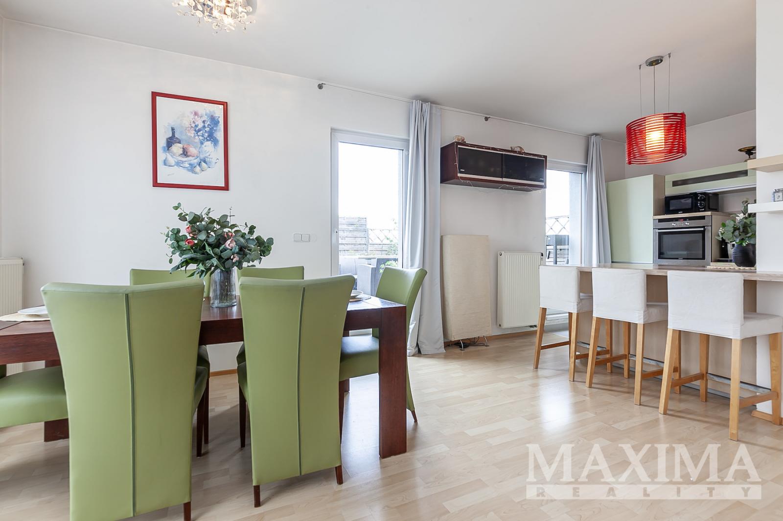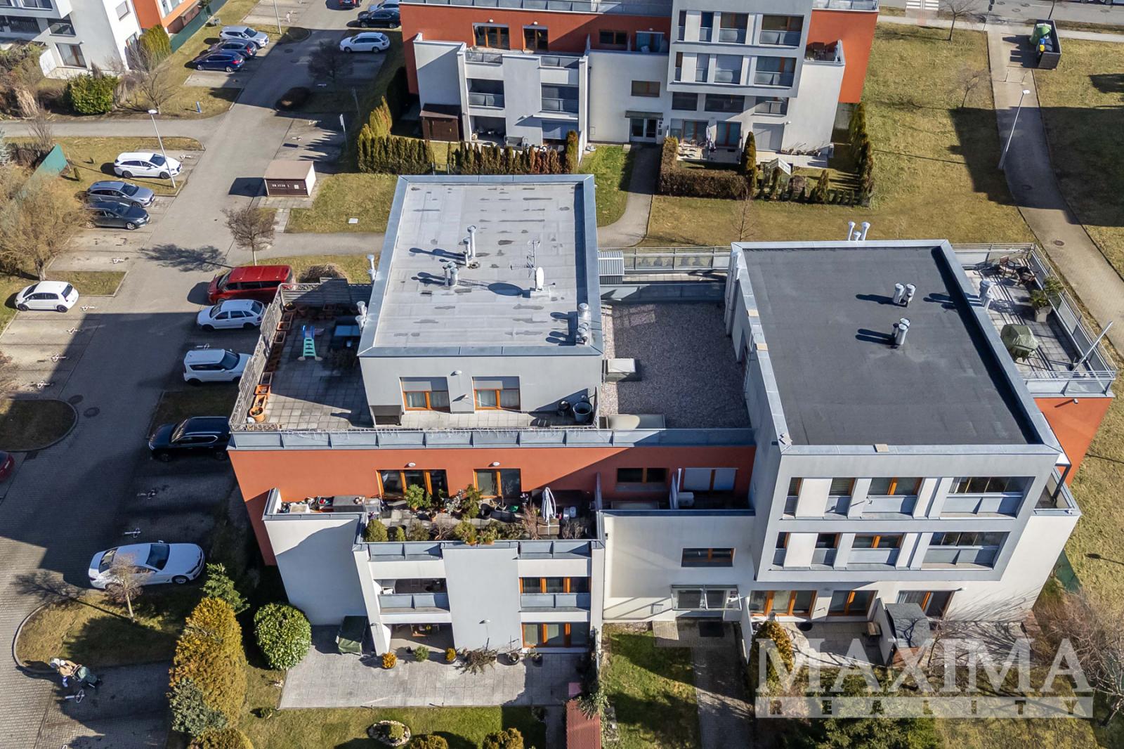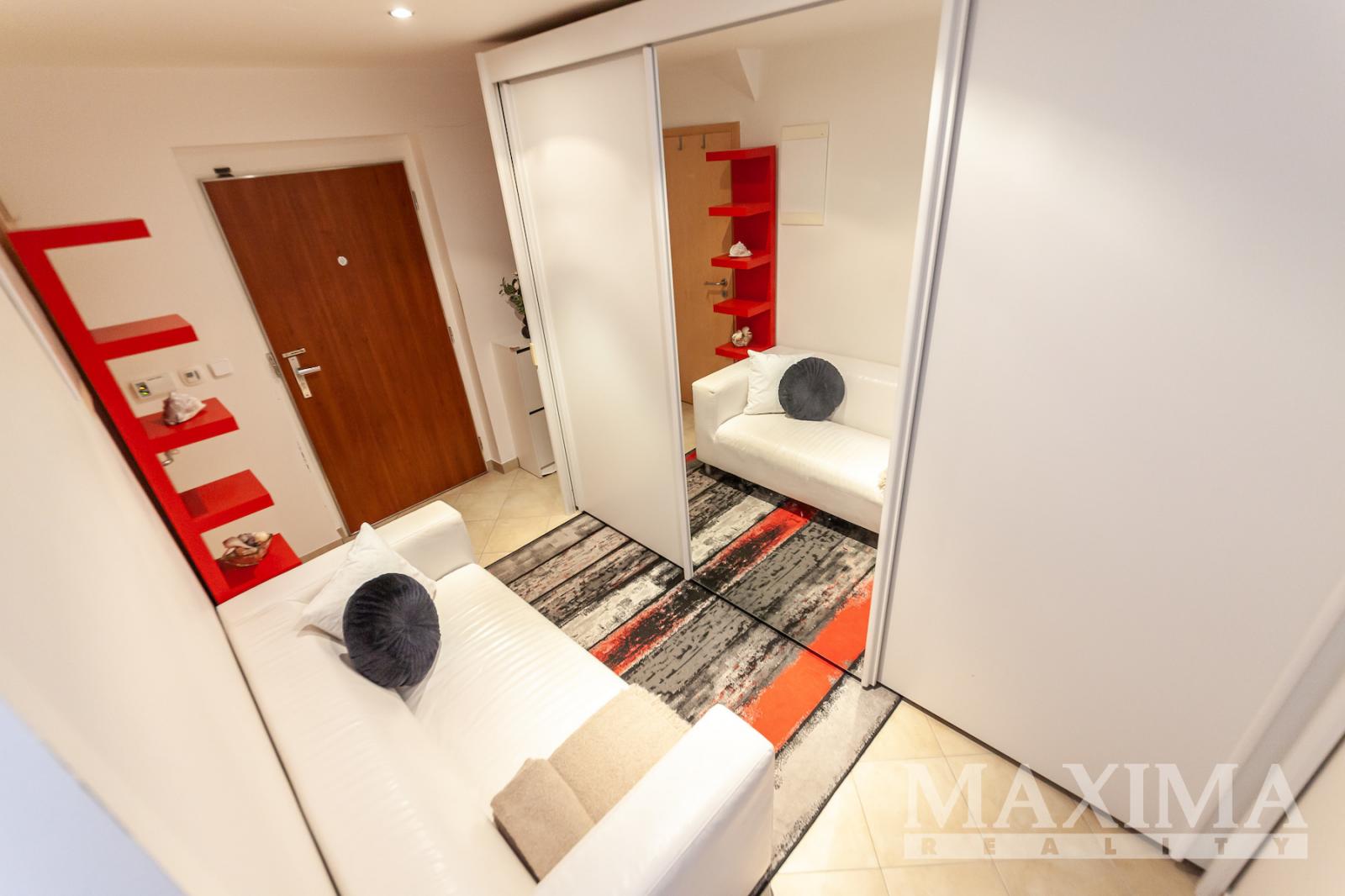 Exkluzivní nabídka jedinečné nemovitosti: prostorný byt 4+kk (celková plocha 179 m2) s pohledově chráněnou rozlehlou terasou, se značným odstupem od okolní zástavby, s otevřeným výhledem, lodžií, garáží a dalším parkovacím místem. Komfortní bydlení v metropoli s parametry bydlení v rodinném domě. Základní dispozice 4+kk/T/L, dále 2 koupelny, komora, technická místnost, hala s knihovnou, vstupní hala se šatnou. V suterénu velký sklep a garážové místo. Jednotka s celkovou plochou 179 m2: 113,3 m2 (vnitřní plocha bytu), 62,5 m2 (terasa), 2,8 m2 (lodžie), je situována ve 3. a 4. NP komorního bytového domu. Byt je uspořádán mezonetově tak, že vstupní podlaží reprezentuje pouze vstupní hala se šatnou a komorou, oddělená bezpečnostními dveřmi od společných prostor komorního bytového domu. V horním podlaží mezonetu se rozkládá v naprostém soukromí obytná zóna bytu s terasou a lodžií. Hala s knihovnou umožňuje vstup do společenské zóny, kterou tvoří obývací pokoj (30,8 m2) s jídelnou a kuchyní, provázaný francouzskými okny s terasou (62,4 m2) i vstup do intimní zóny, kterou tvoří pokoj (14 m2) s východně orientovanou lodžií (2,8 m2) a další 2 pokoje (10,9 m2 a 11,1 m2). Dispozici tohoto podlaží doplňují 2 koupelny, 2 WC a komora/technická místnost s pračkou atd. Příslušenství jednotky tvoří sklep (3,7 m2) v 1.PP. Pohodlné parkování 2 aut garantuje garážové místo a venkovní parkovací místo. Bydlení s mimořádným soukromím v obytné čtvrti s parkovou úpravou, rychlou dostupností centra metropole, současně v sousedství přírody a dosahu vybavenosti. Nemovitost je nabízena výhradně naší kanceláří. Hypotéka lze, zařídíme nejoptimálnější profinancování.