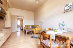 Prostorný byt 1+1 o výměře 58m2 s částečně zachovanými původními prvky, který nabízí ideální příležitost přizpůsobení dispozice a jeho modernizaci vlastním potřebám. Zvýšené stropy dodávají bytu majestátnost a náležitou vzdušnost. Vertikální prostor zde můžete využít na maximum a vytvořit zde moderní designové bydlení s výraznými lustry nebo pódiem jako variantu pro odpočinek či spánek.