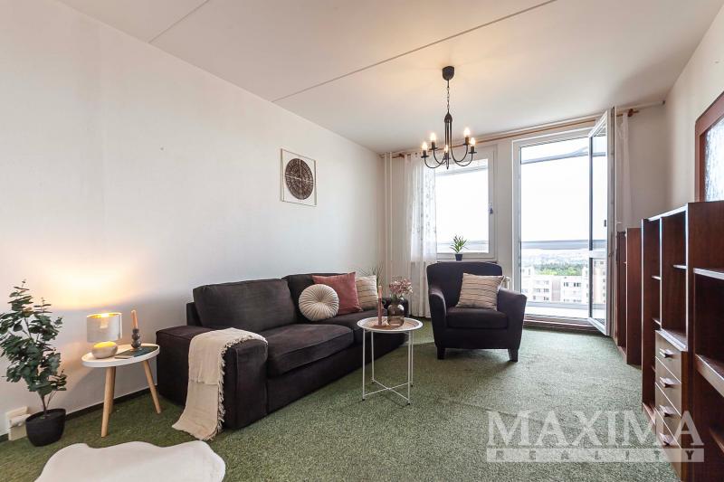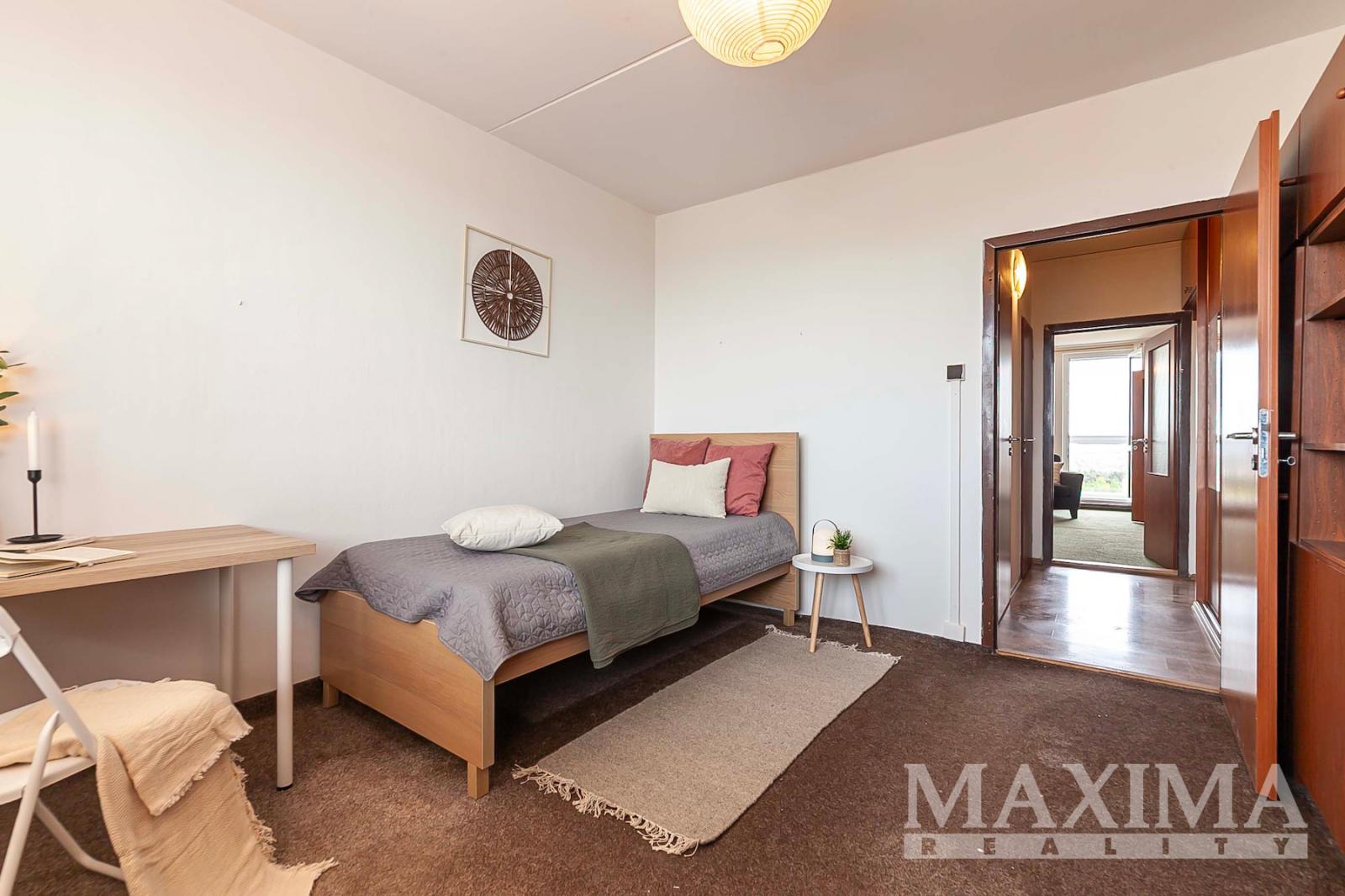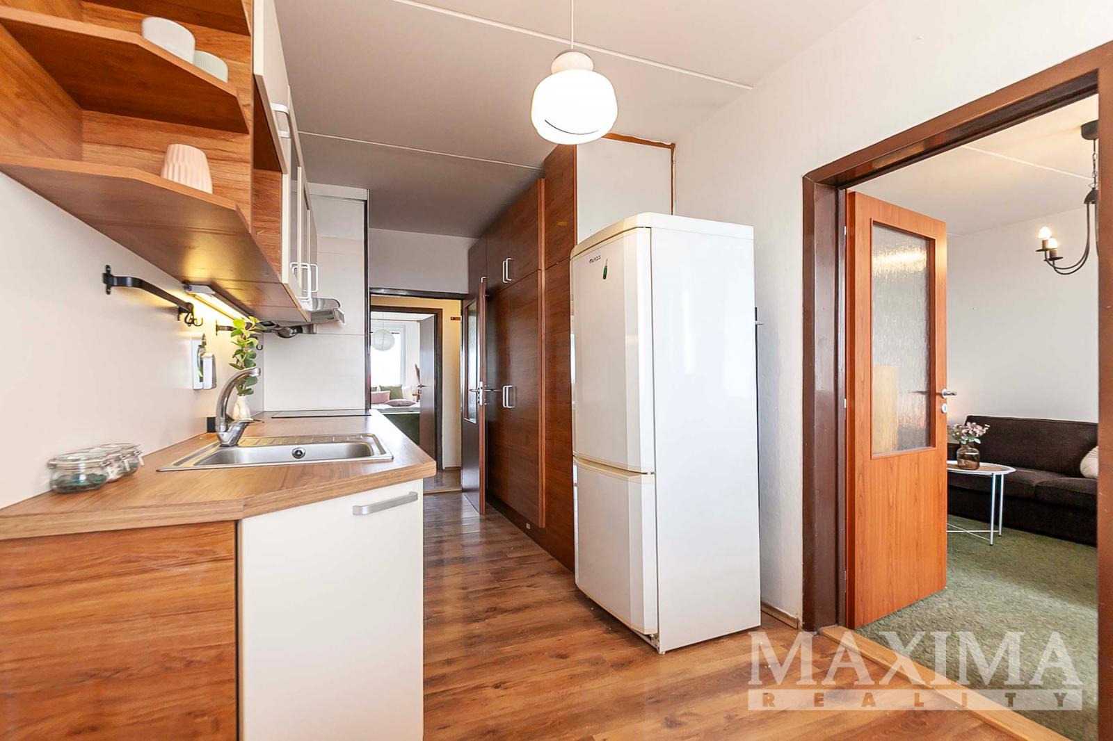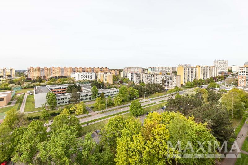 Byt tvoří obývací pokoj o velikosti 18,37 m2, ložnice 13,08 m2, pokoj 12,06 m2, předsíň 7,02 m2, koupelna se sprchovým koutem o rozloze 2,61 m2 a samostatná toaleta 0,86 m2. Dispozici bytu lze změnit na krásné 3+kk vybouráním příčky mezi kuchyní a obývacím pokojem. K bytu náleží komora umístěná v 9. patře o velikosti 1 m2.