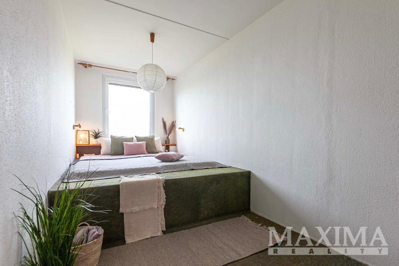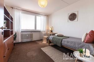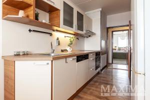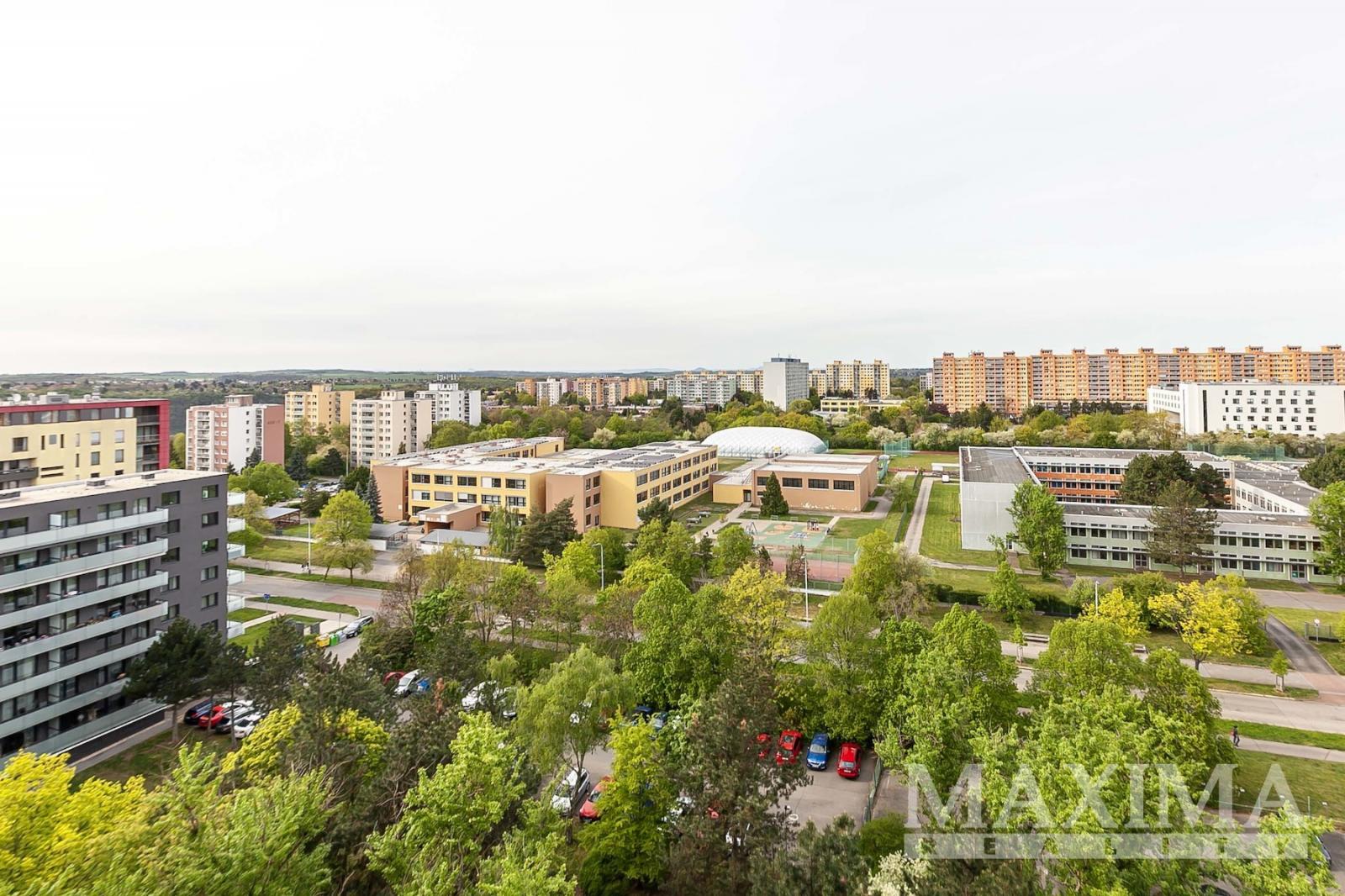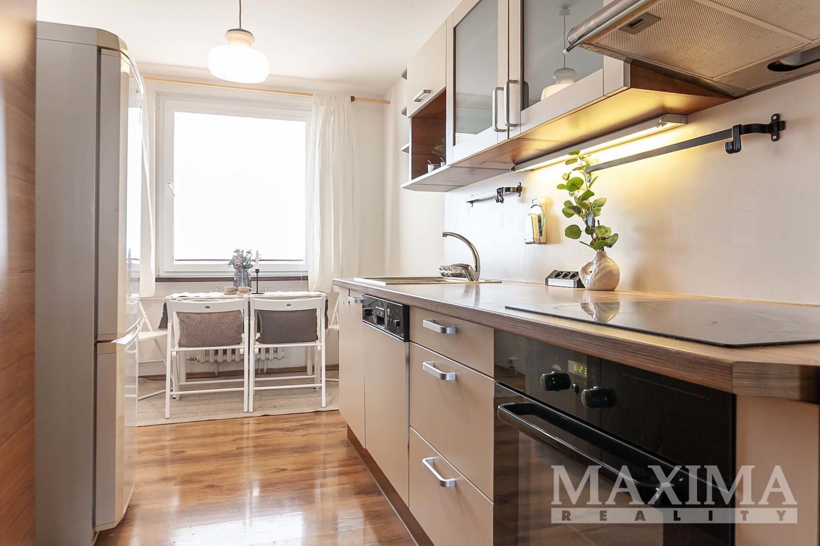 Byt tvoří obývací pokoj o velikosti 18,37 m2, ložnice 13,08 m2, pokoj 12,06 m2, předsíň 7,02 m2, koupelna se sprchovým koutem o rozloze 2,61 m2 a samostatná toaleta 0,86 m2. Dispozici bytu lze změnit na krásné 3+kk vybouráním příčky mezi kuchyní a obývacím pokojem. K bytu náleží komora umístěná v 9. patře o velikosti 1 m2.