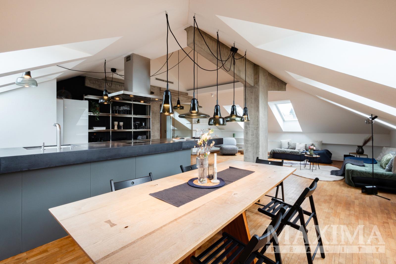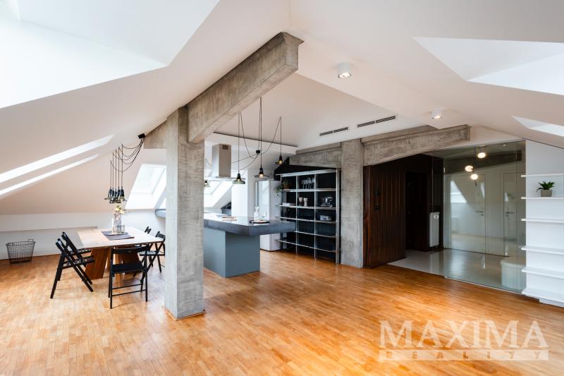 Exkluzivní nabídka výjimečného podkrovního bytu 3+kk o výměře 143,3 m2 ve vyhledávané lokalitě Prahy 6 - Dejvic.