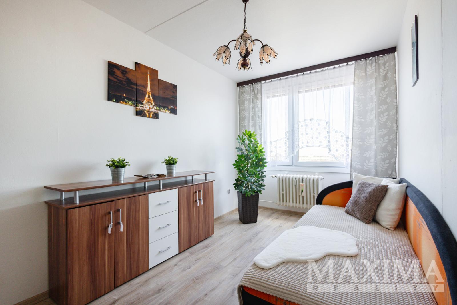 Výhradně nabízíme prostorný a světlý byt 3+1 s lodžií a sklepem v 10. nadzemním podlaží panelového domu s výtahem v oblíbené lokalitě Praha Prosek, kousek od metra C.