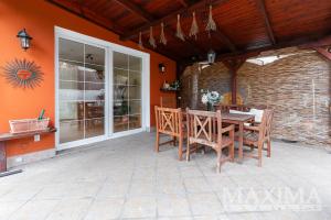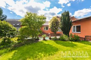 K domu náleží jižně orientovaná zahrada se zpevněnou plochou 37,4 m2 vhodnou pro bazén či vířivku a terasa 30 m2 s masivní pergolou a venkovním krbem. Technický stav domu je velmi dobrý, včetně zateplené střechy z roku 2020 s investicí 620 000 Kč.